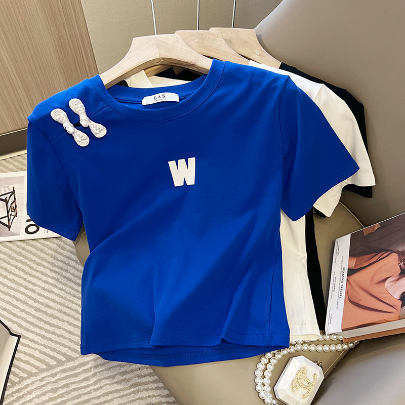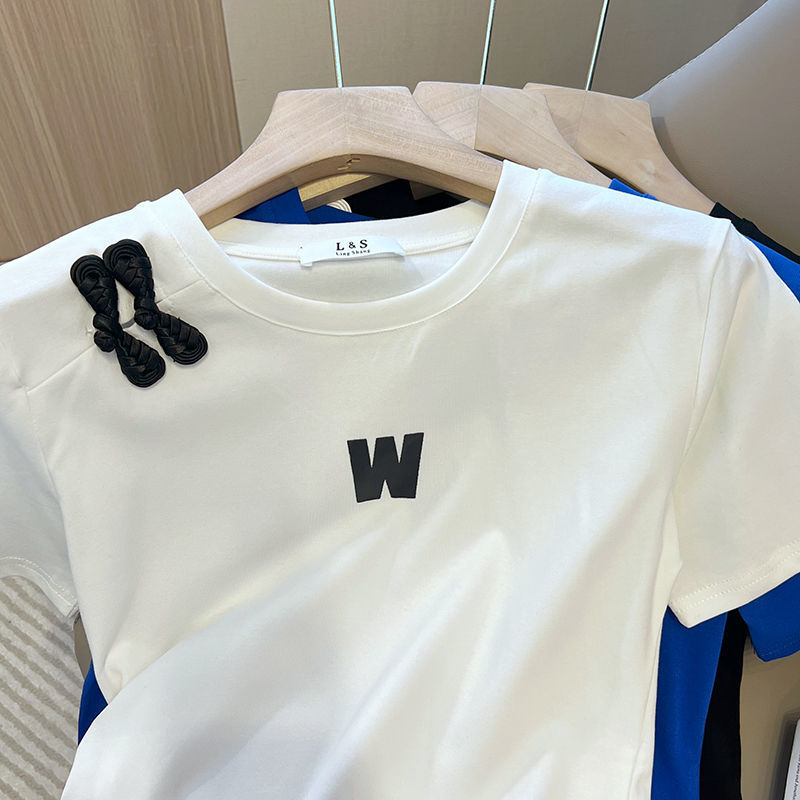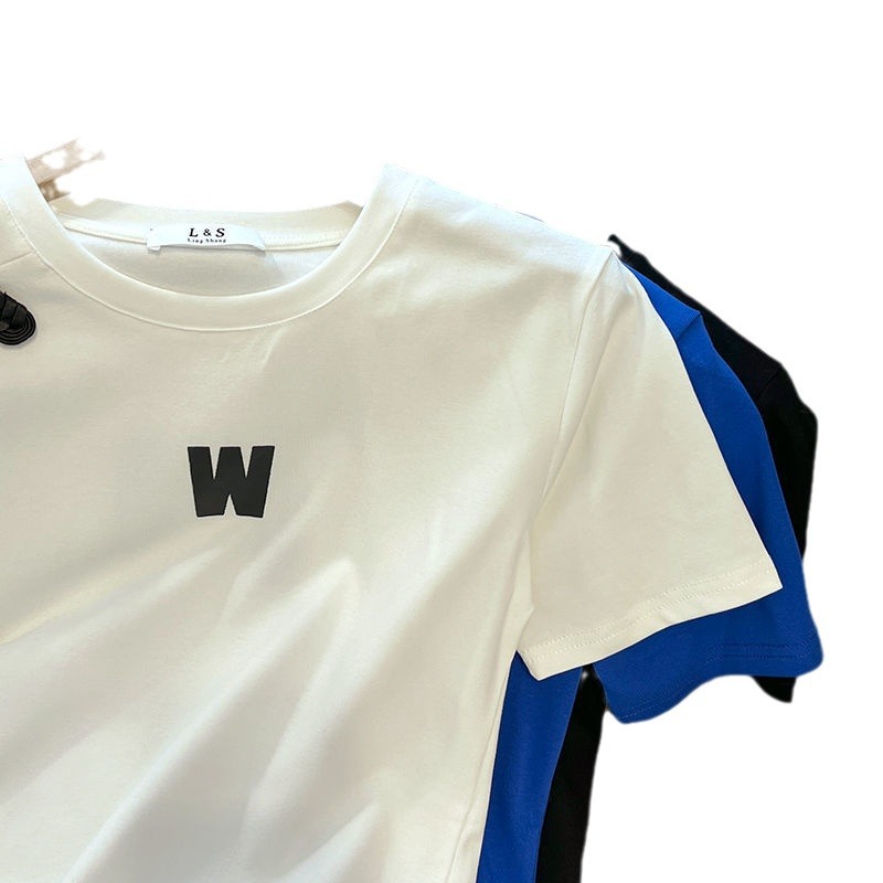 品牌折扣~专柜撤回时尚字母印花白色短袖T恤女修身显瘦短款上衣潮