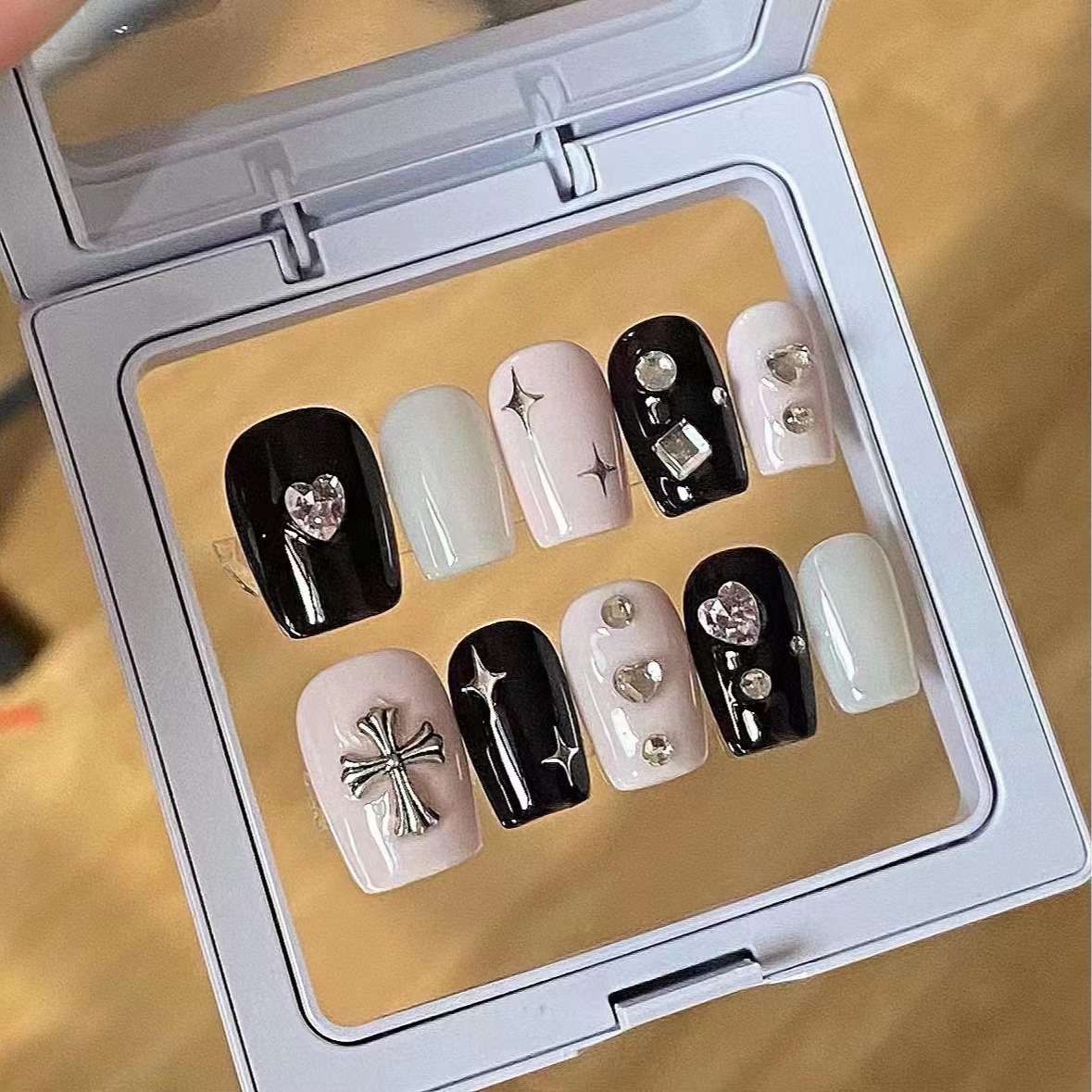 纯手工美甲穿戴甲假指甲ins风粉色显白克罗心可拆卸穿戴甲新款美