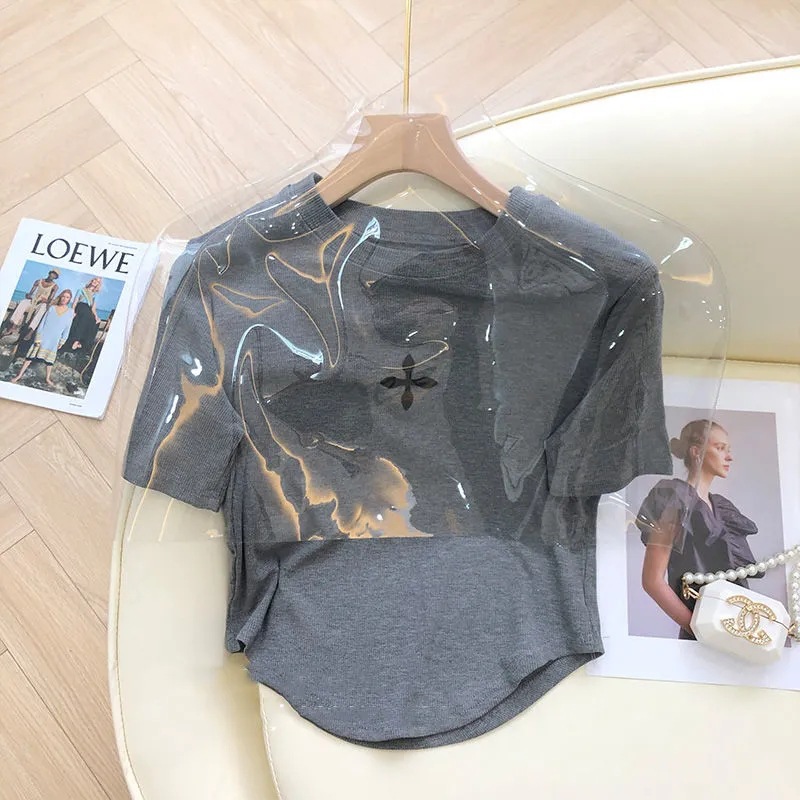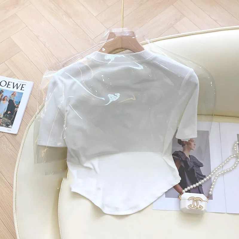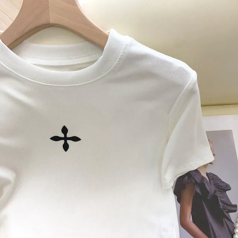 纯色字母短袖t恤女夏新款时尚气质修身减龄百搭小众别致上衣