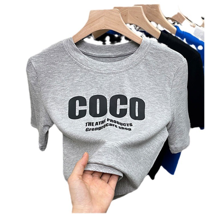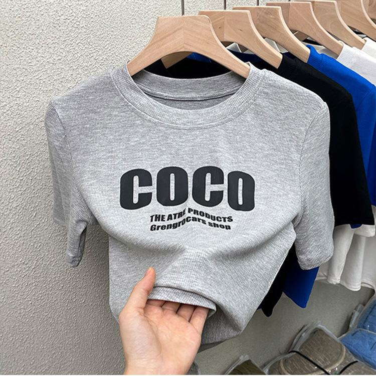 纯欲风独特别致甜辣不规则下摆半袖上衣设计感字母印花短袖t恤女
