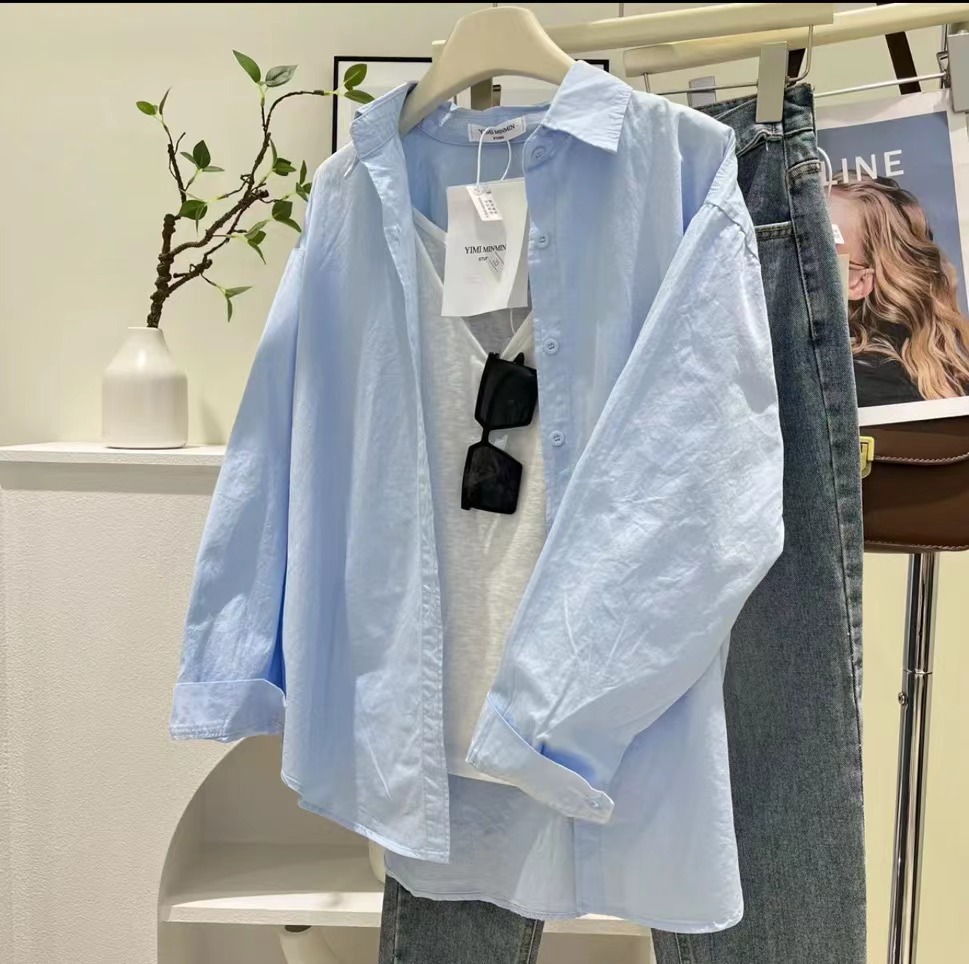 ins纯色衬衣时尚休闲气质洋气设计感百搭简约风复古宽松衬衫