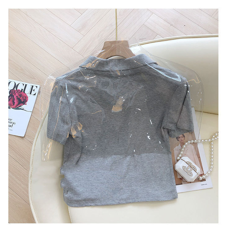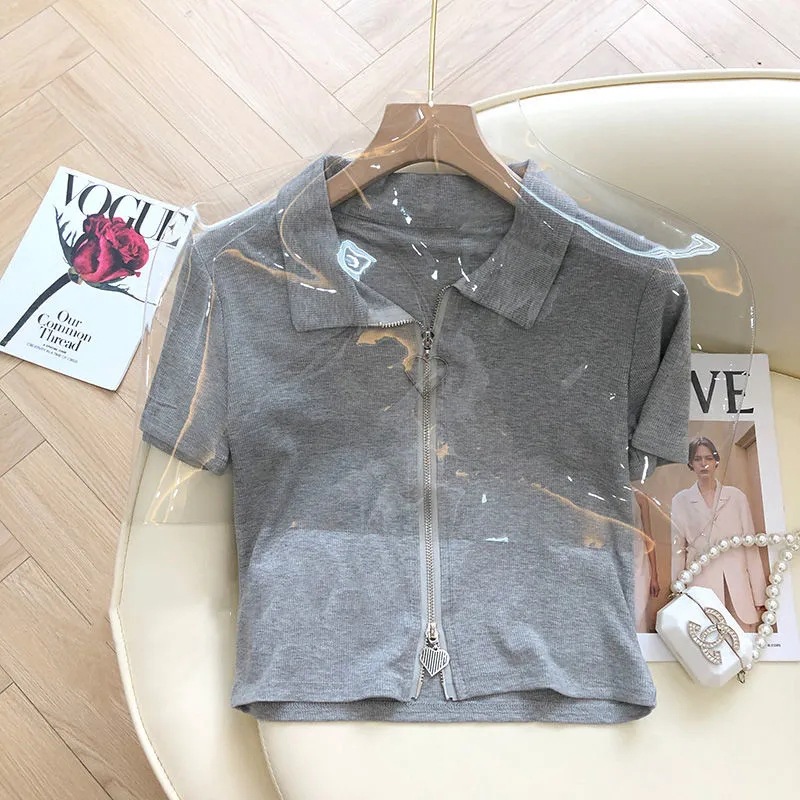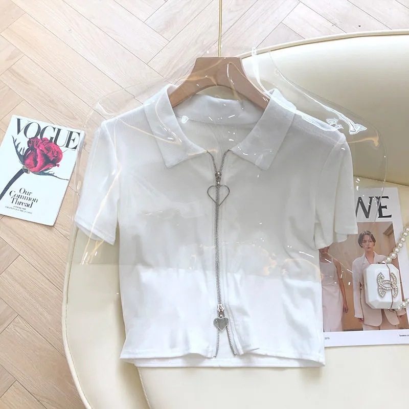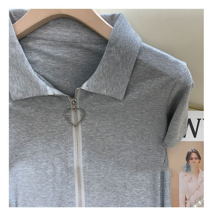 夏季新款polo领双头拉链短袖T恤女时尚气质高档显瘦上衣外套