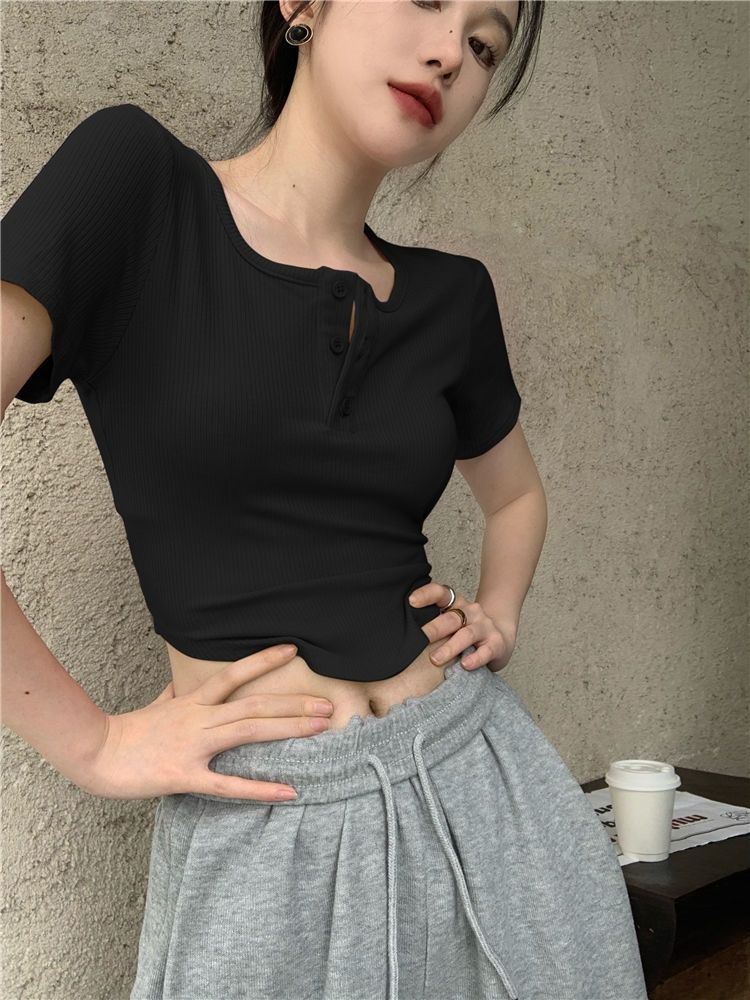 圆领短袖t恤女韩系宽松夏季新款纯色打底衫内搭体恤正肩上衣