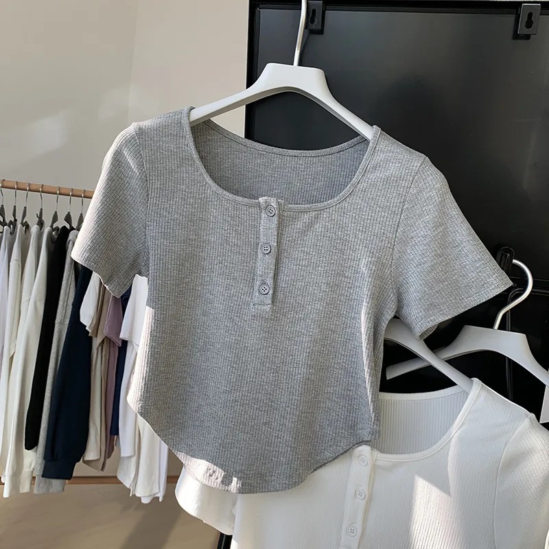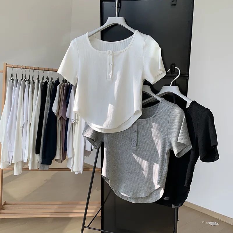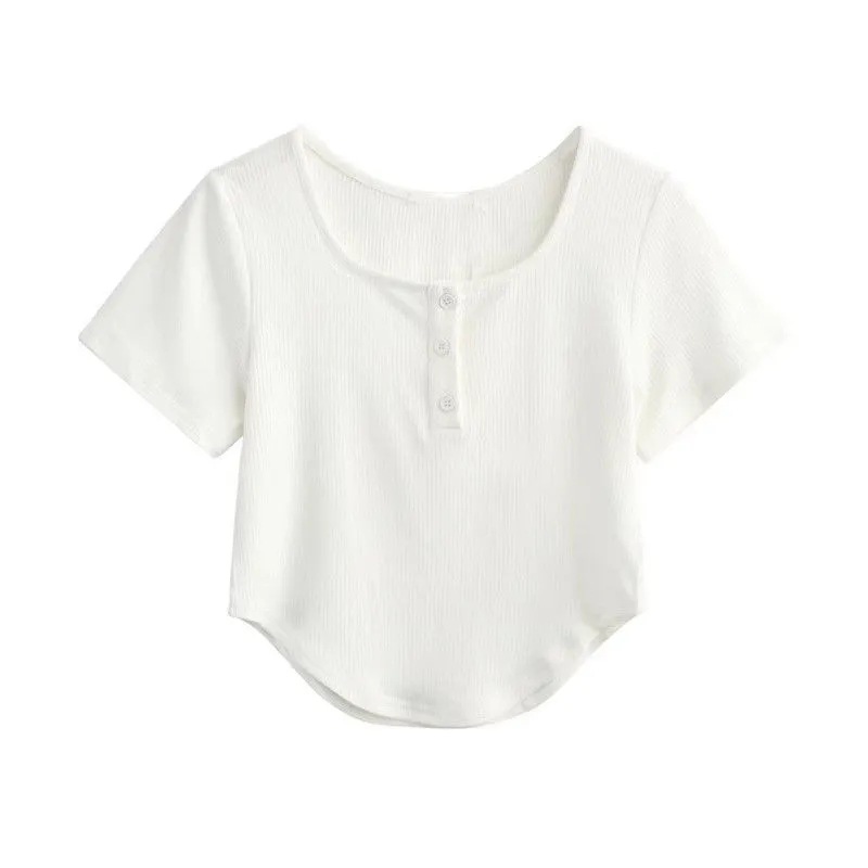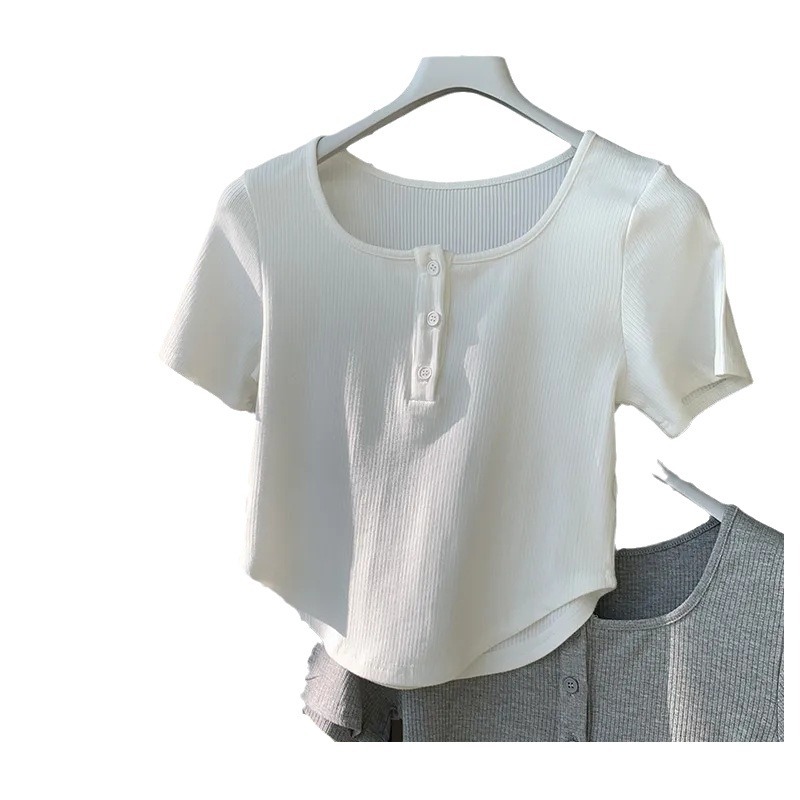 正肩纯欲风T恤女ins潮夏季白色甜辣妹不规则别致修身显瘦短袖上衣