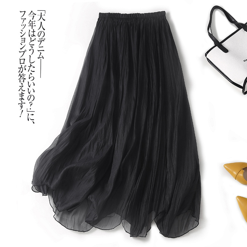a字开叉黑色牛仔半身裙中长款高腰显瘦百搭宽松学生梨形大码长裙