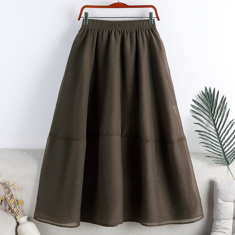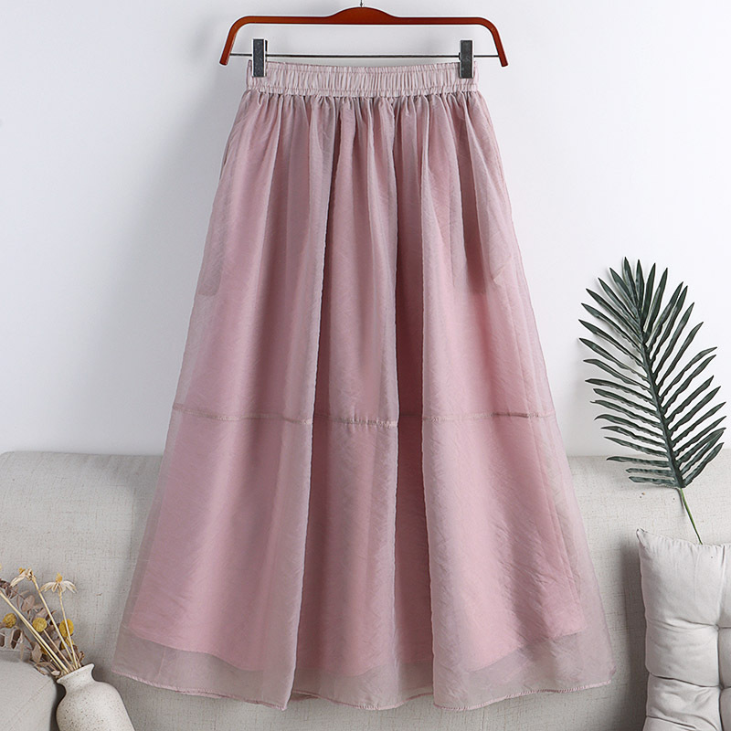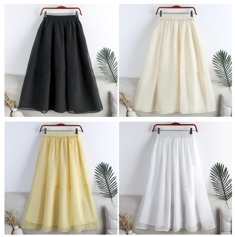 欧根纱蓬蓬A字裙春夏新款高级感网纱大摆伞裙中长款半身裙女