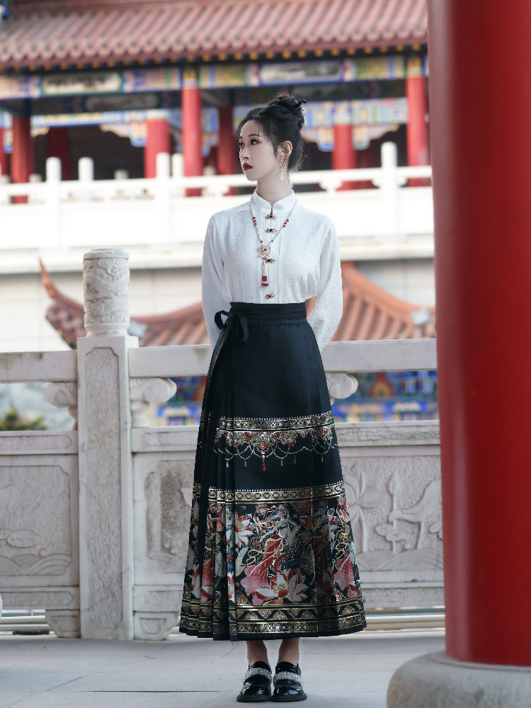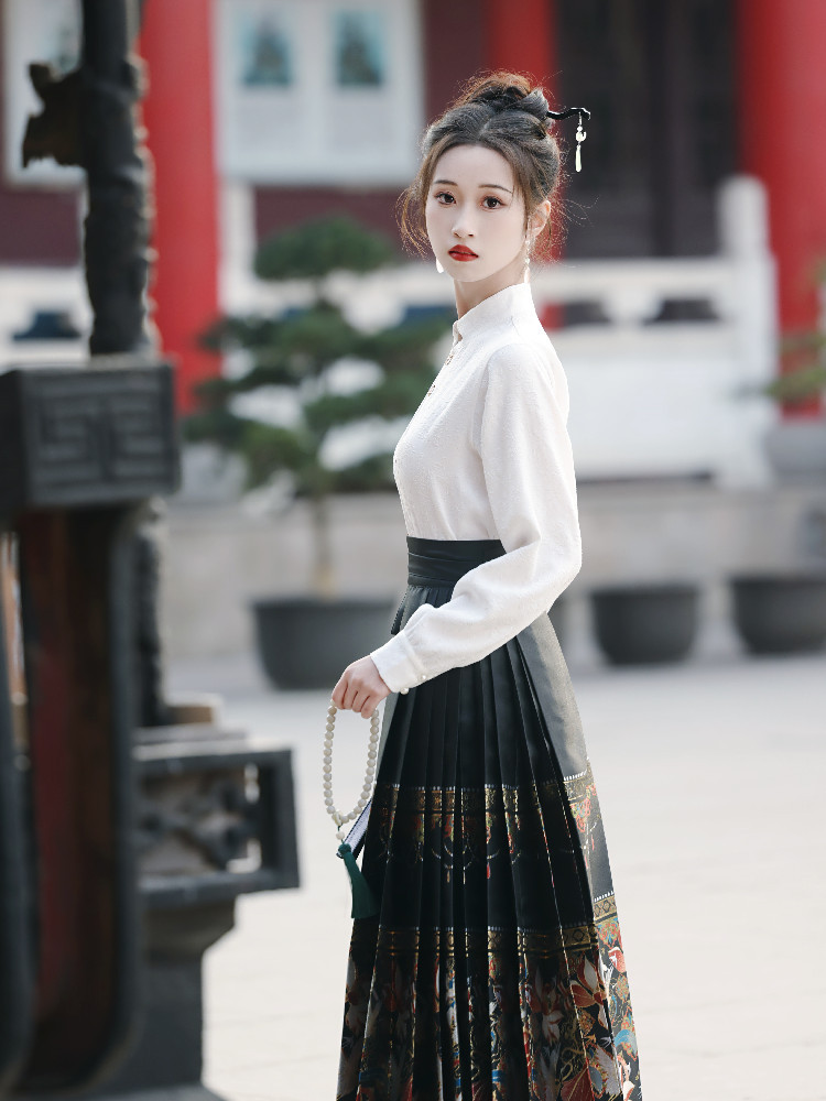 黑色新中式轻国风马面裙套装春款春夏季小个子上班穿明制汉服