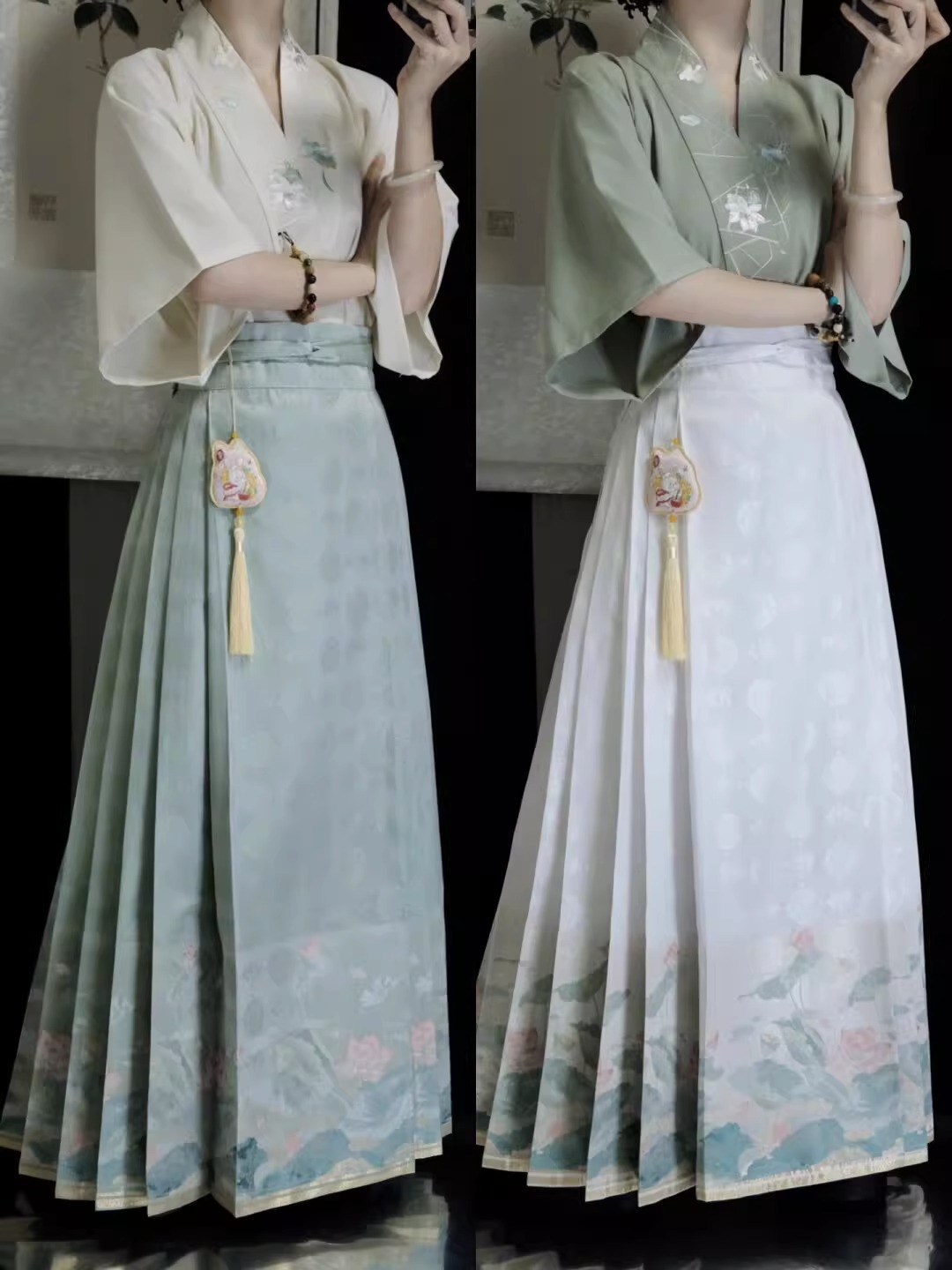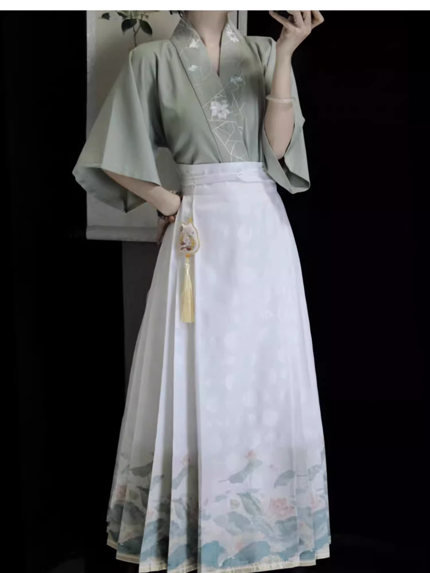 改良汉服交襟短袖上衣马面裙套装日常半身裙新款女夏款小个子