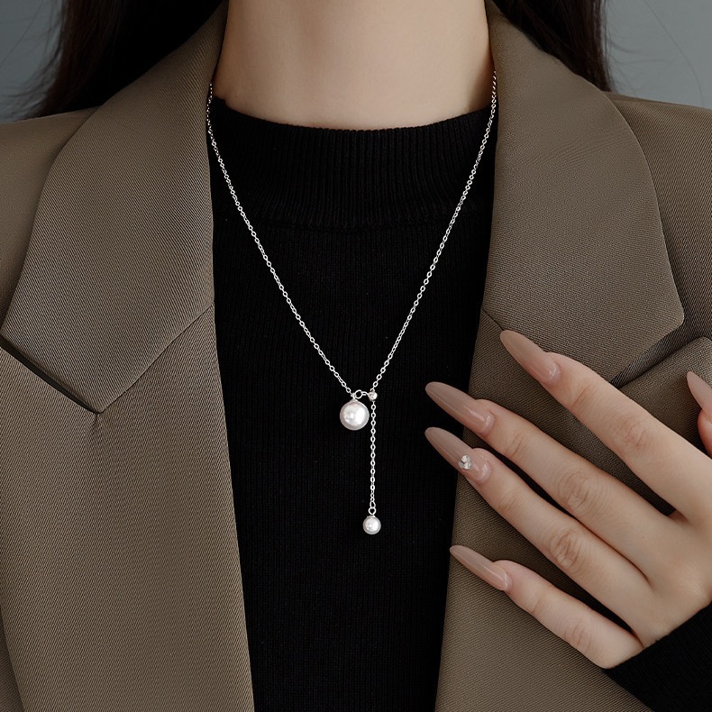钛钢简约气质珍珠流苏项链饰品女百搭小众高级感不掉色锁骨毛衣链