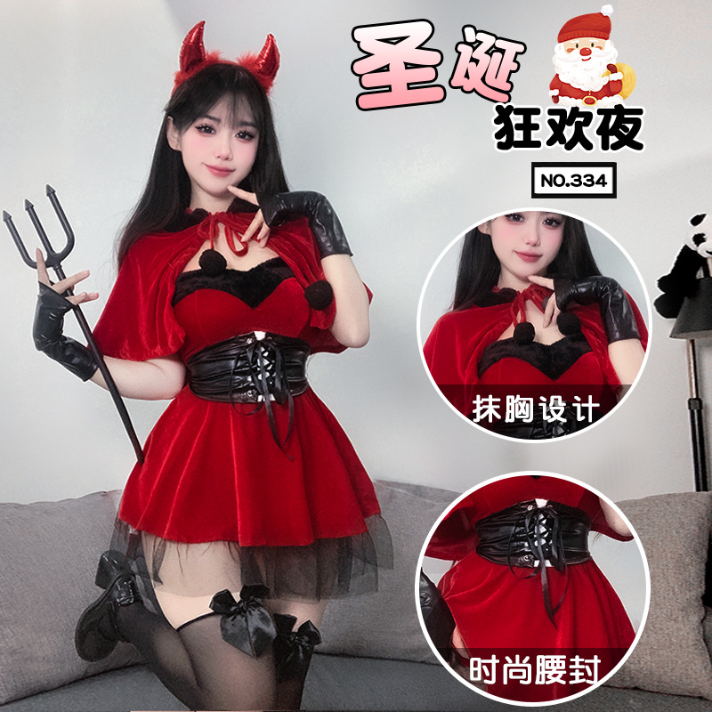 性感圣诞节服装女性感演出服新年战袍小恶魔网红主播