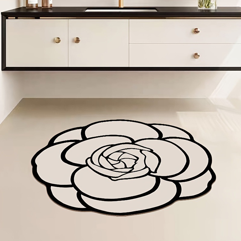 轻奢花卉异形吸水地垫浴室防滑脚踏垫法式山茶花衣帽间脚垫转椅垫