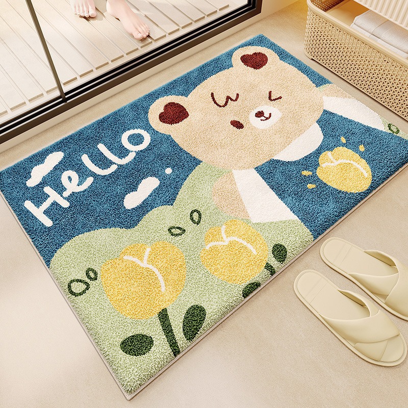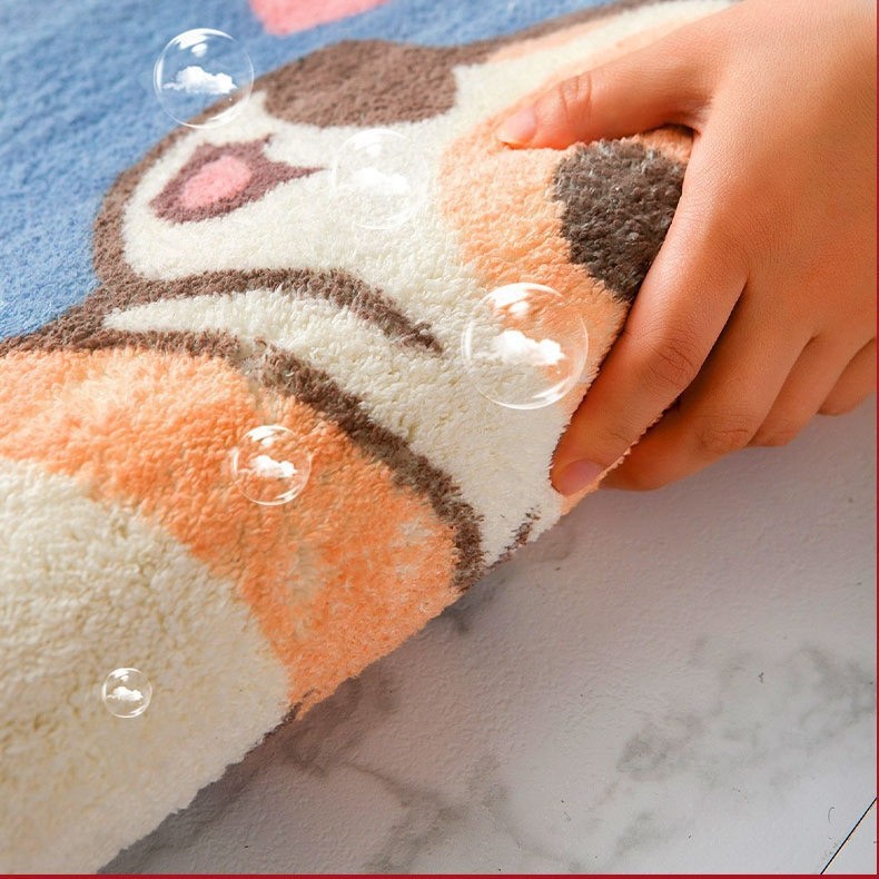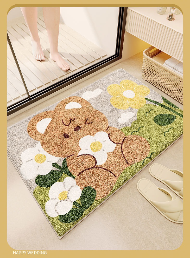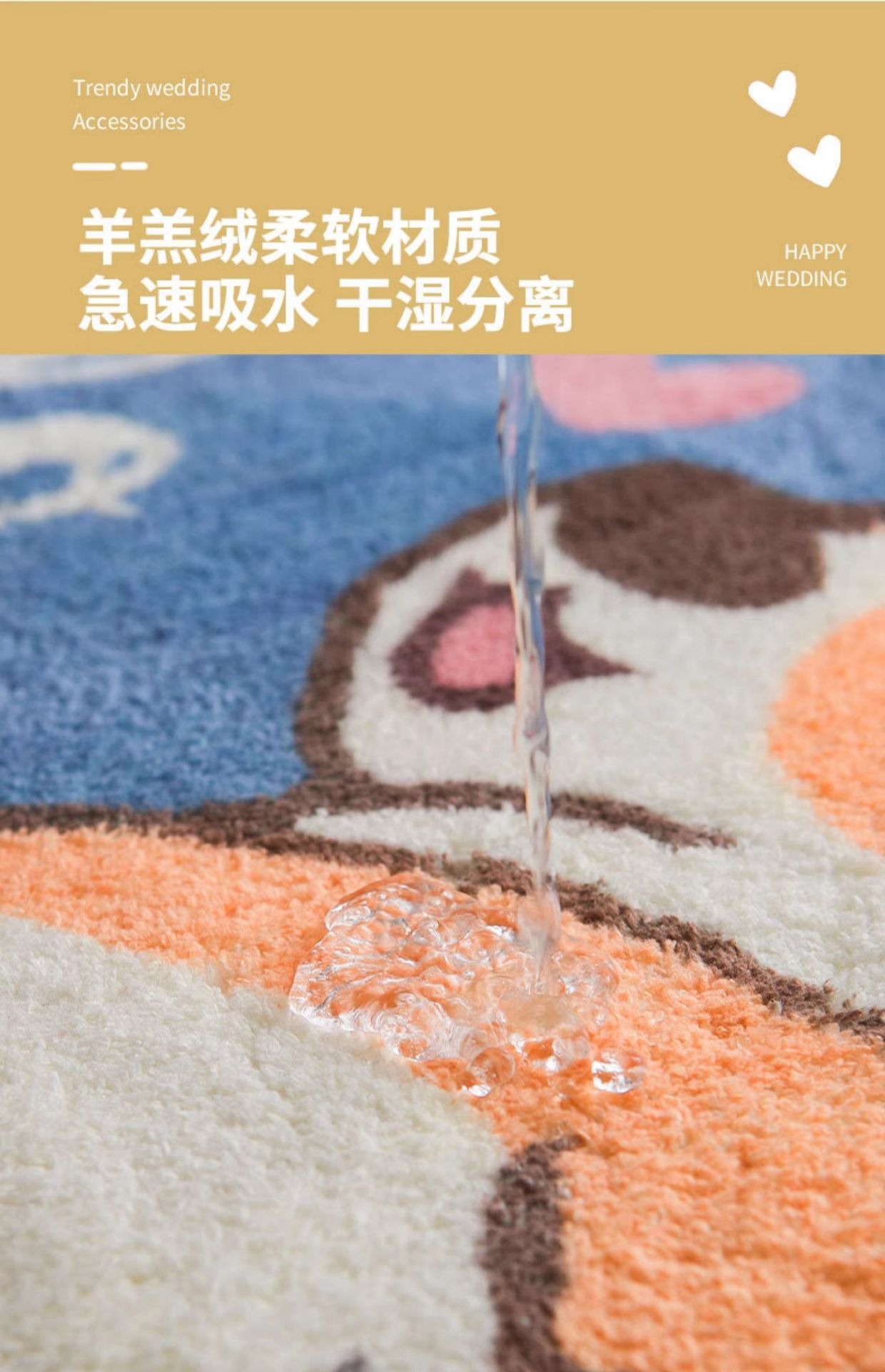 卫生间浴室吸水腳踏墊卡通仿羊绒地垫厕所防滑耐脏易打理脚垫