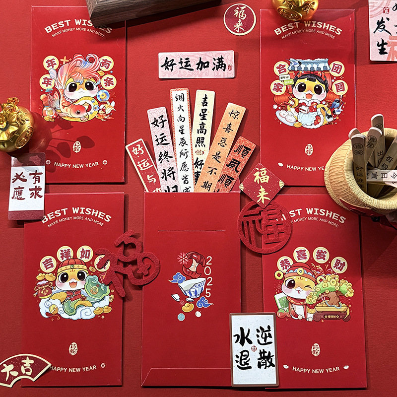 2025蛇年送福红包恭贺新春送长辈送小孩福意满满年年有余时来运转