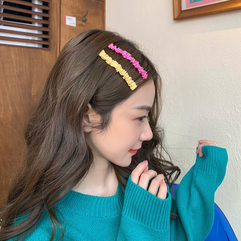 春季新款糖果色褶皱发夹少女一字夹发夹发卡网红年韩国夹子
