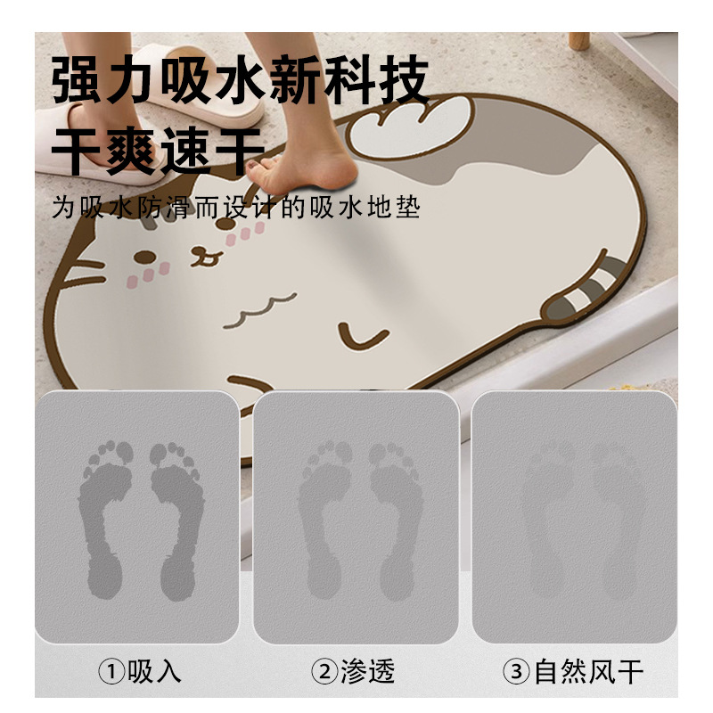卡通硅藻泥地垫可爱浴室吸水脚踏垫卫生间淋浴间门口耐磨防滑垫