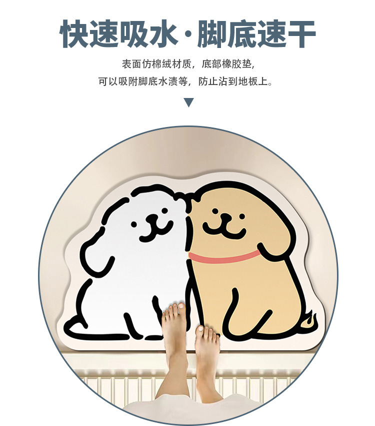 浴室吸水腳踏墊卡通小狗浴室地垫卫生间门口脚垫防滑速干厕所地毯