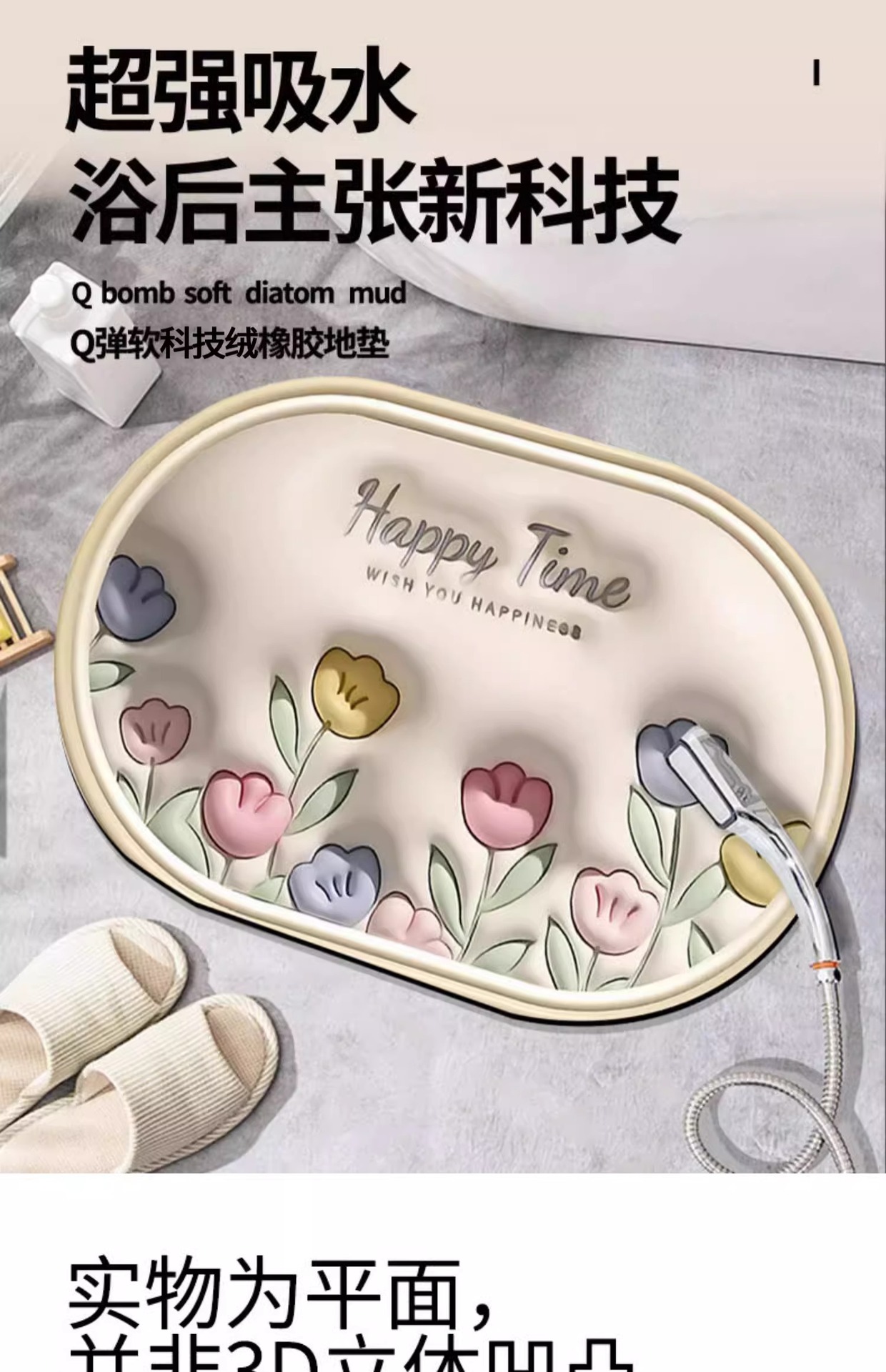 立体硅藻泥浴室地垫强吸水家用卫生间速干脚踏垫厕所防滑垫子