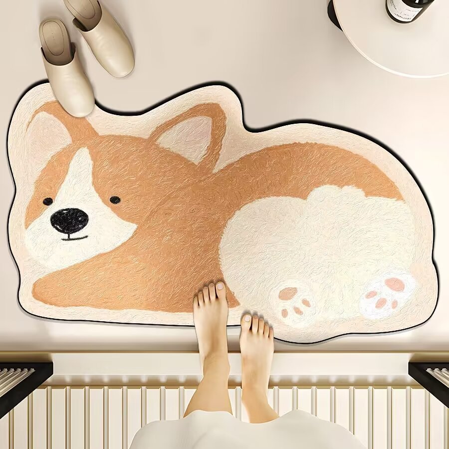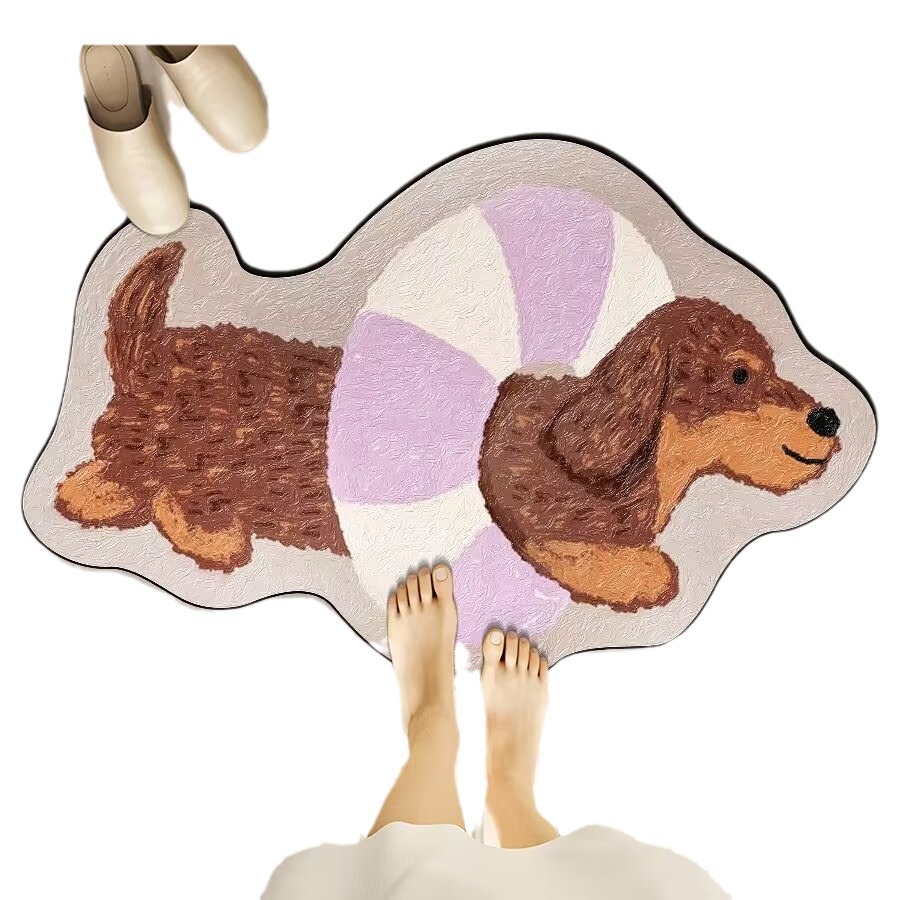 硅藻泥吸水地垫卡通风小狗浴室防滑脚踏垫卫生间厕所门口防摔地垫