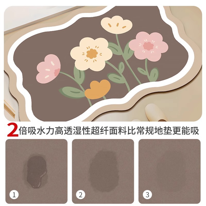 小清新浴室地垫强吸水耐脏易打理硅藻泥地垫卫生间速干脚踏垫子