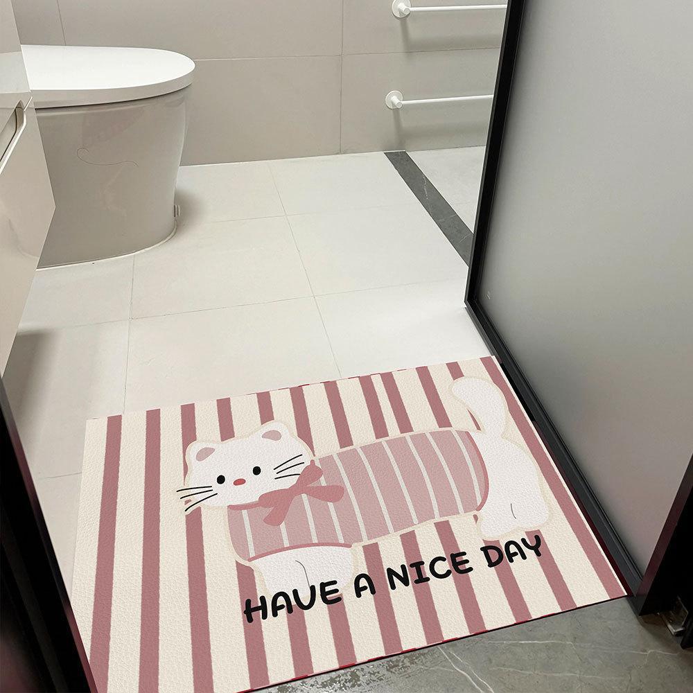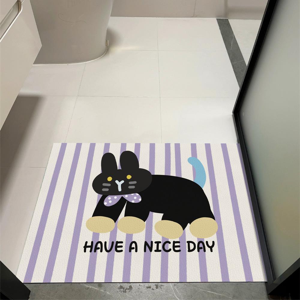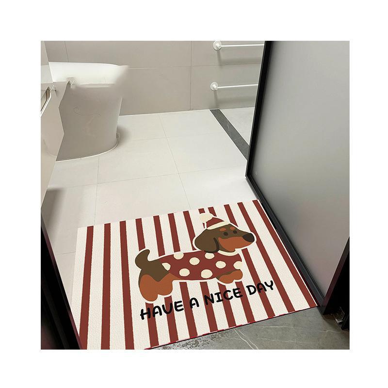 北欧风条纹小狗浴室吸水垫硅藻泥地毯防滑速干厕所脚踏垫