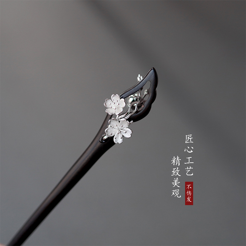 黑檀木发簪女高级感古风汉服旗袍发饰盘发簪子新中式日常简约现代