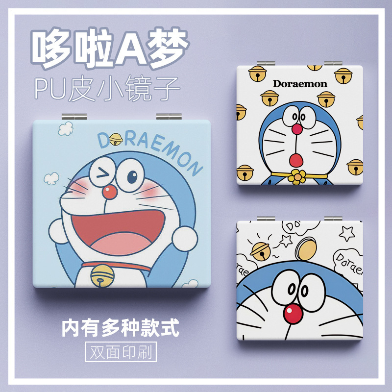 可爱卡通图案化妆镜迷你便携式小镜子方形少女风双面镜PU皮美妆镜
