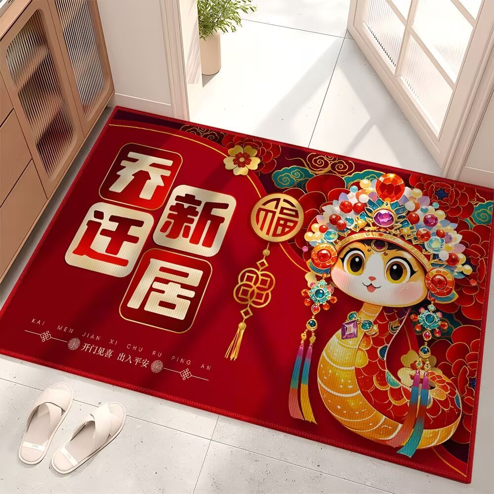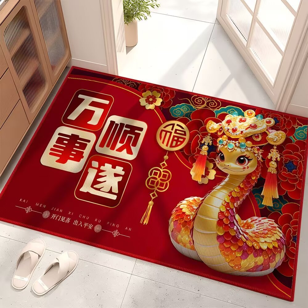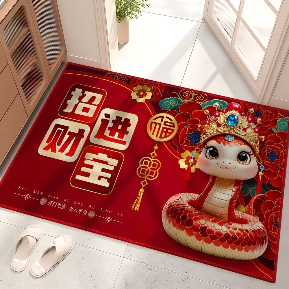 2025蛇年地垫入户门耐脏脚垫浴室吸水腳踏墊高级感水晶绒入户地垫