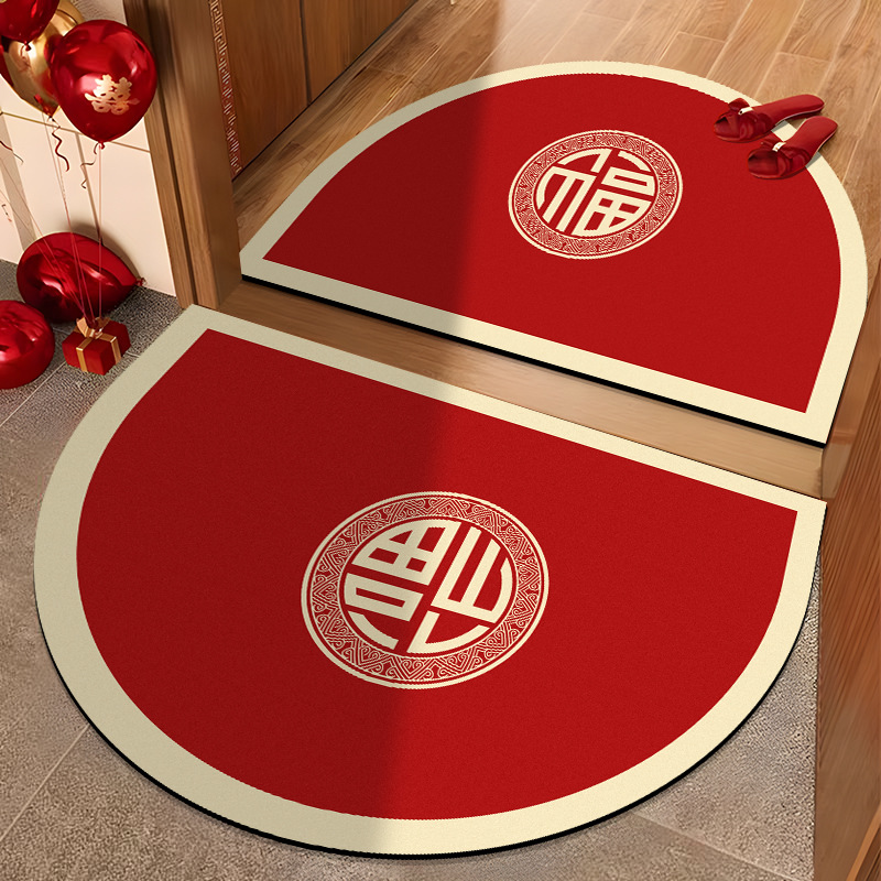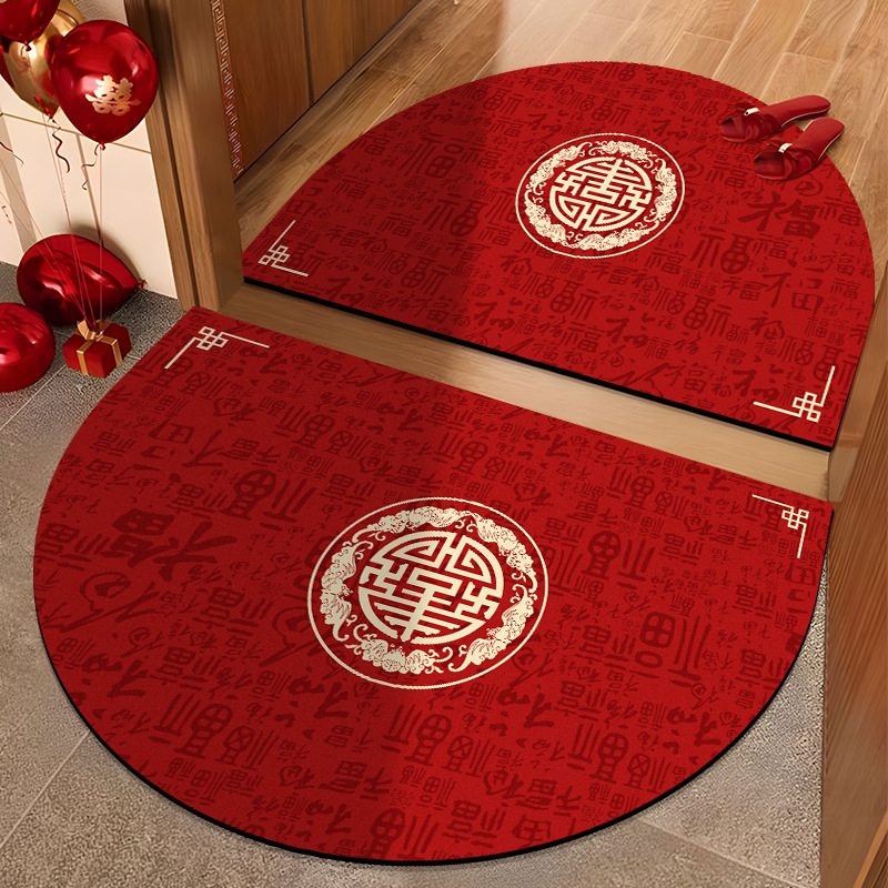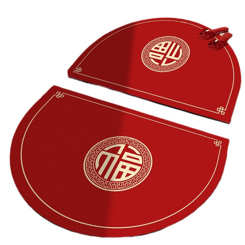 浴室吸水腳踏墊半圆喜庆 红色耐脏脚垫家用卫生间硅藻泥易打理地垫