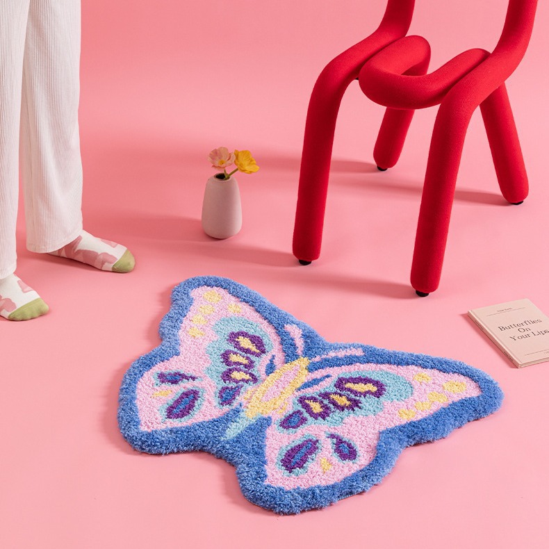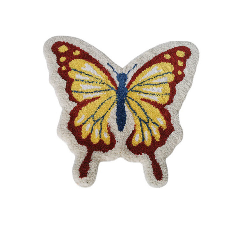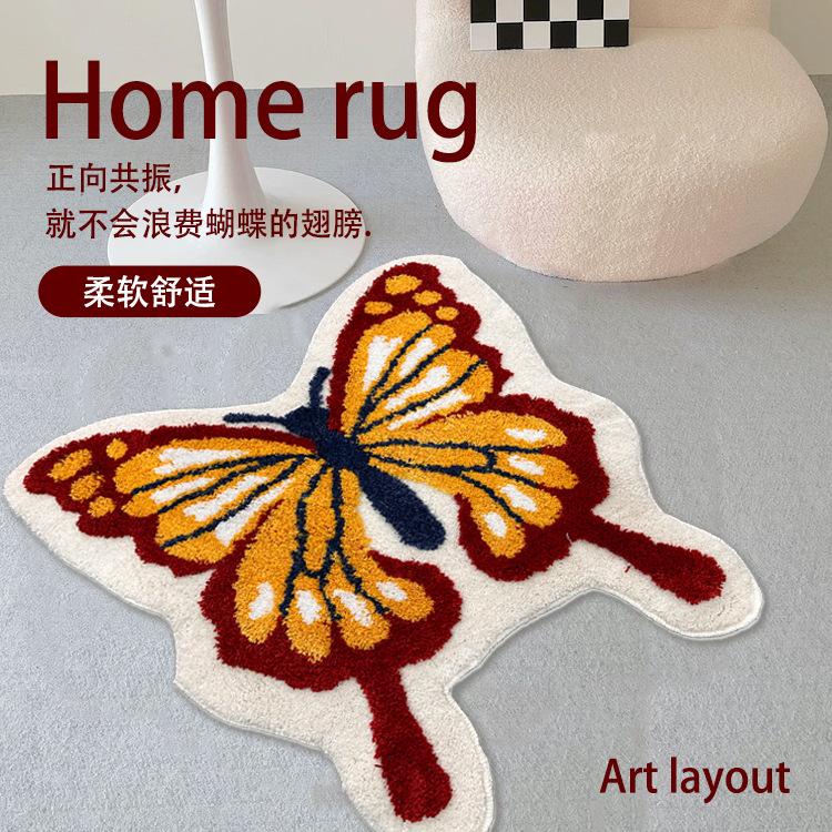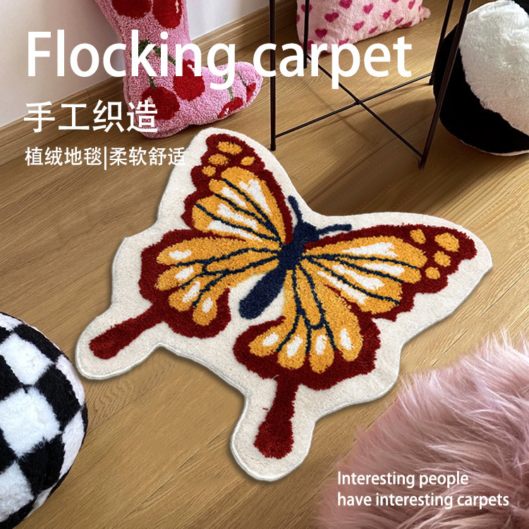 蝴蝶植绒地毯家用装饰吸水脚踏垫卧室加厚床边毯耐脏易打理防滑垫