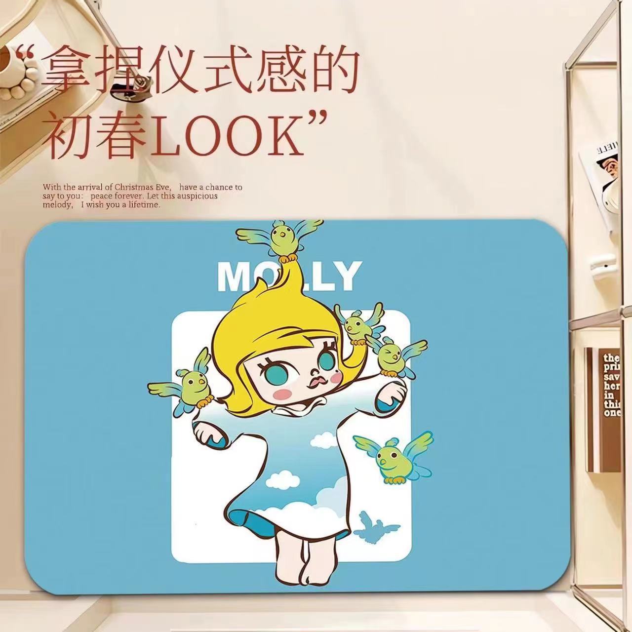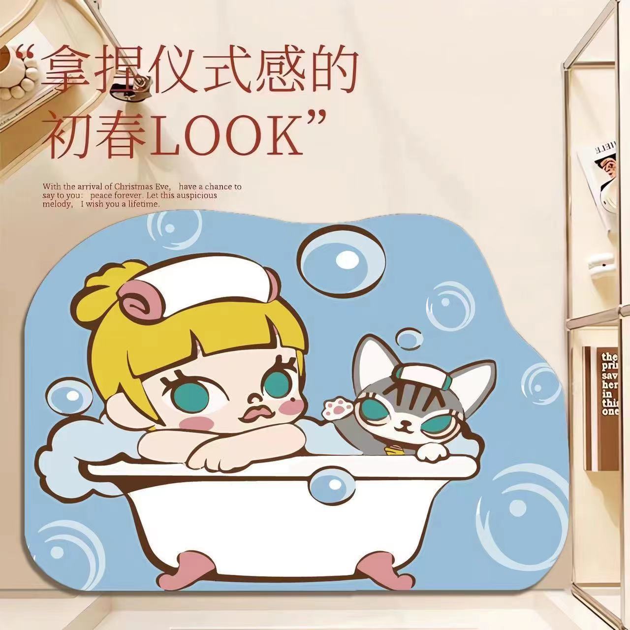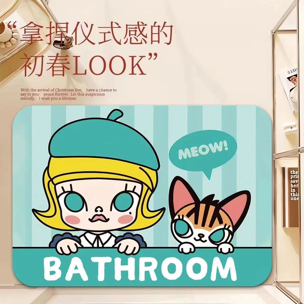 卡通泡泡玛特硅藻泥地垫印花地垫家用浴室吸水耐磨防滑脚踏垫