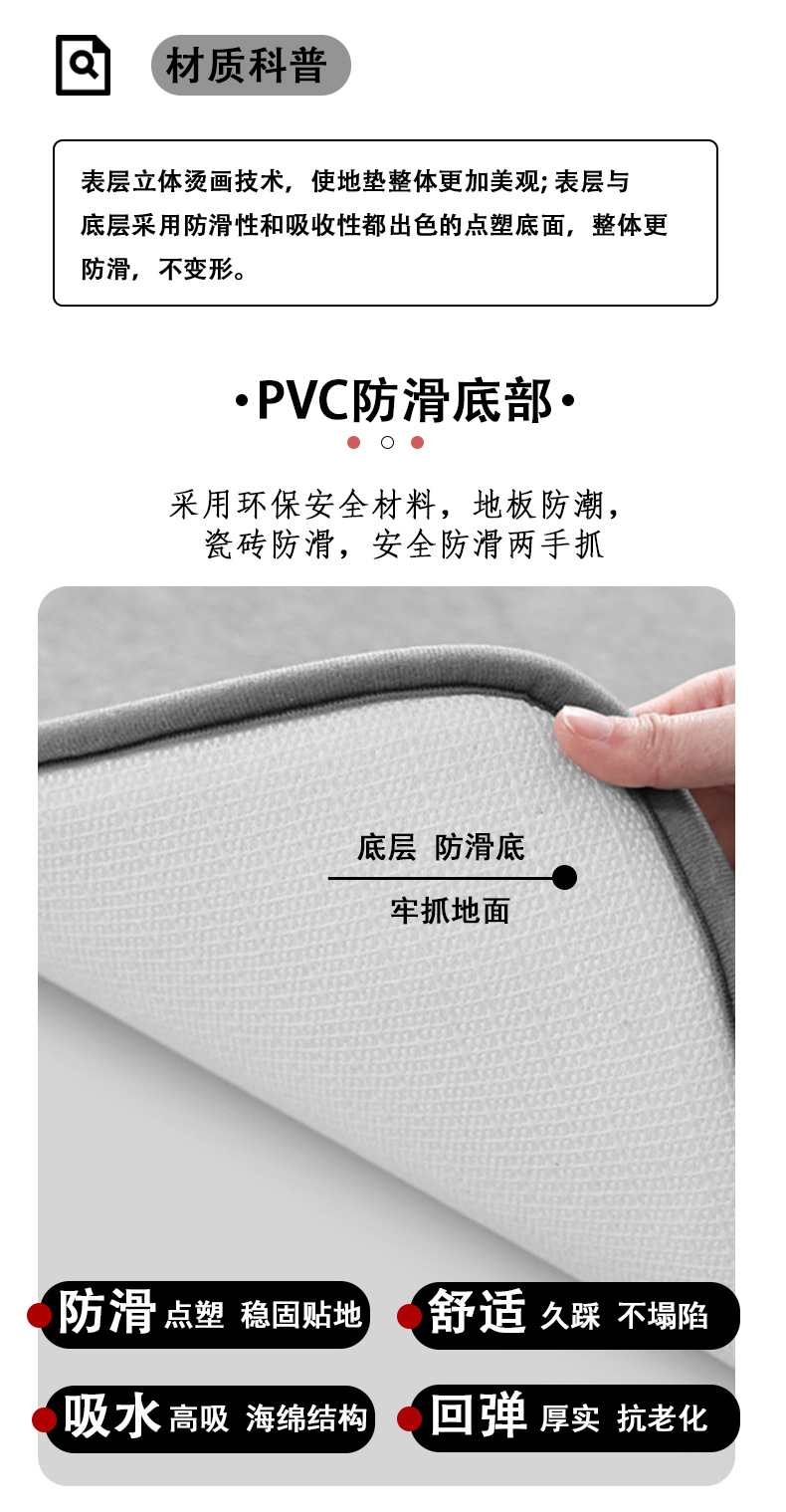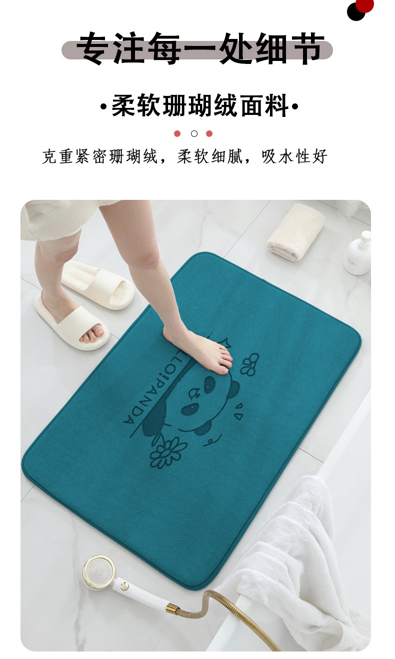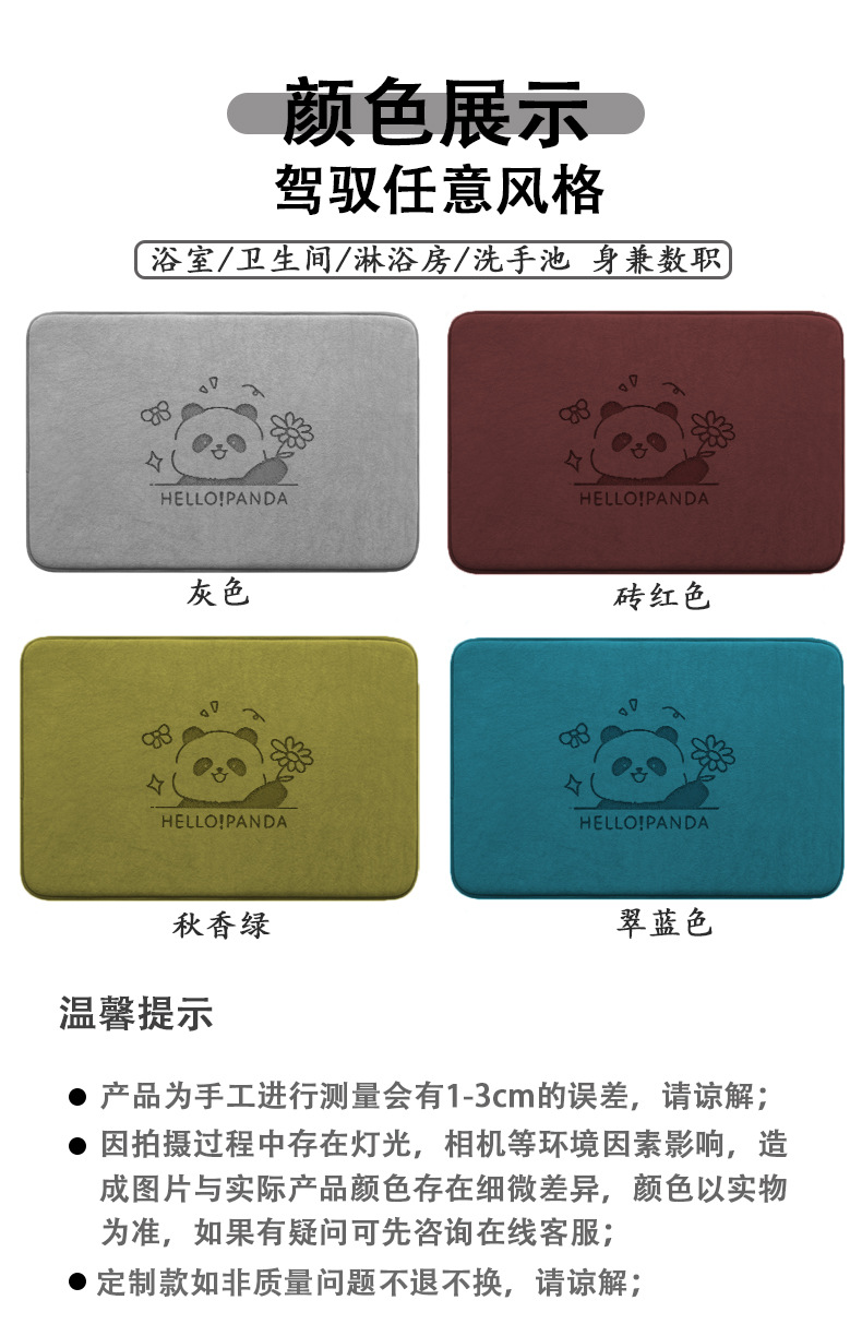 熊猫印花浴室门口吸水脚踏垫灰色防滑地垫卫生间门口脚垫