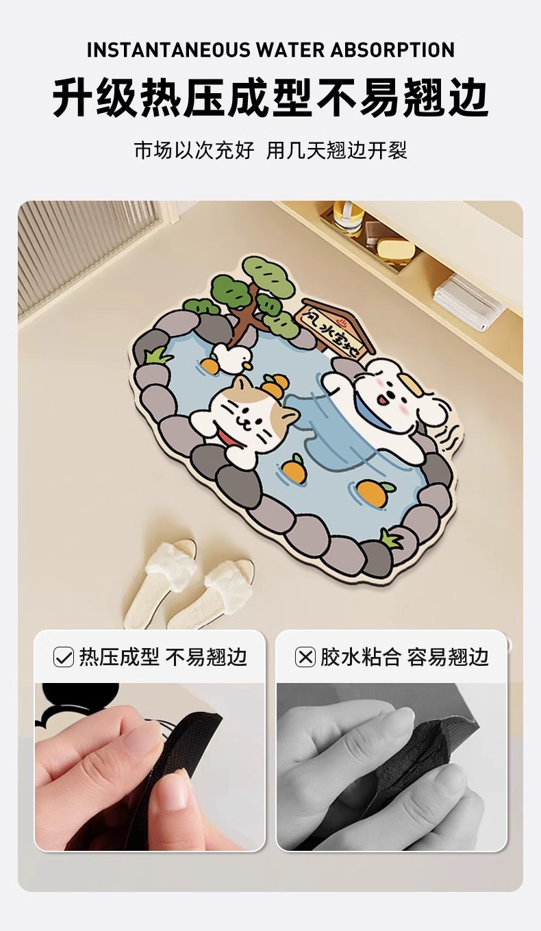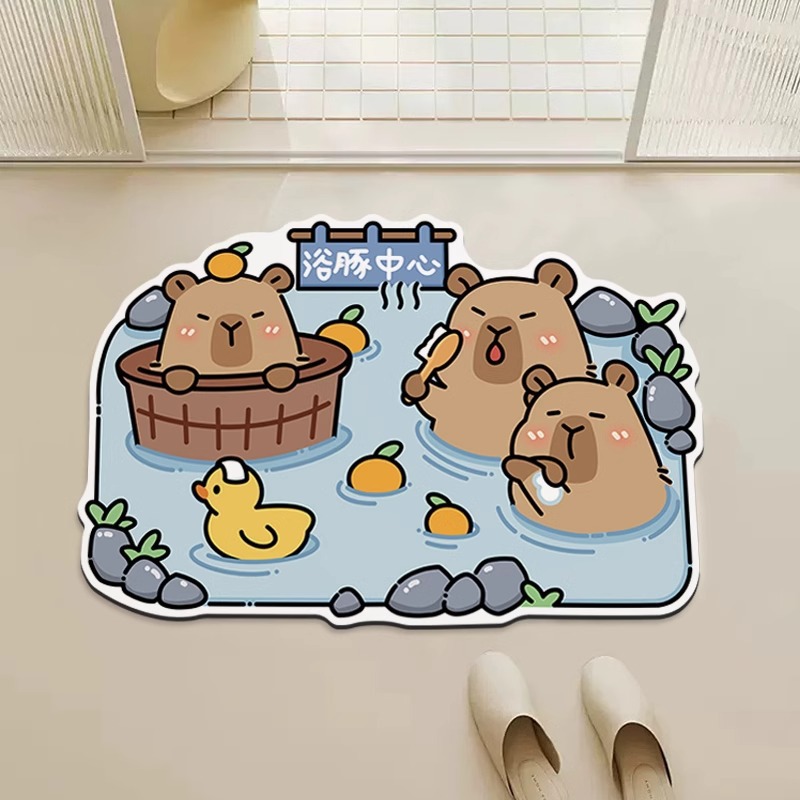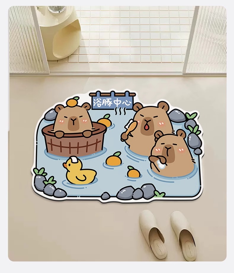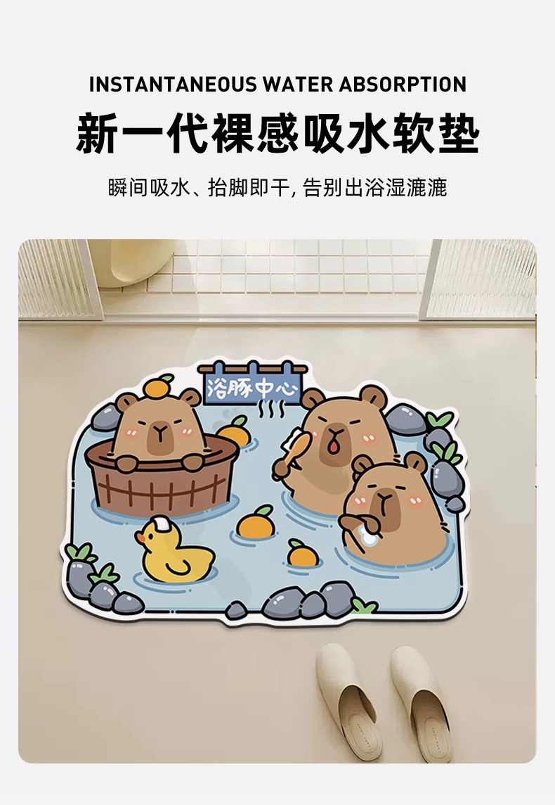 卡皮巴拉浴室地垫硅藻泥吸水防滑速干耐脏厕所卫生间脚踏垫脚垫子