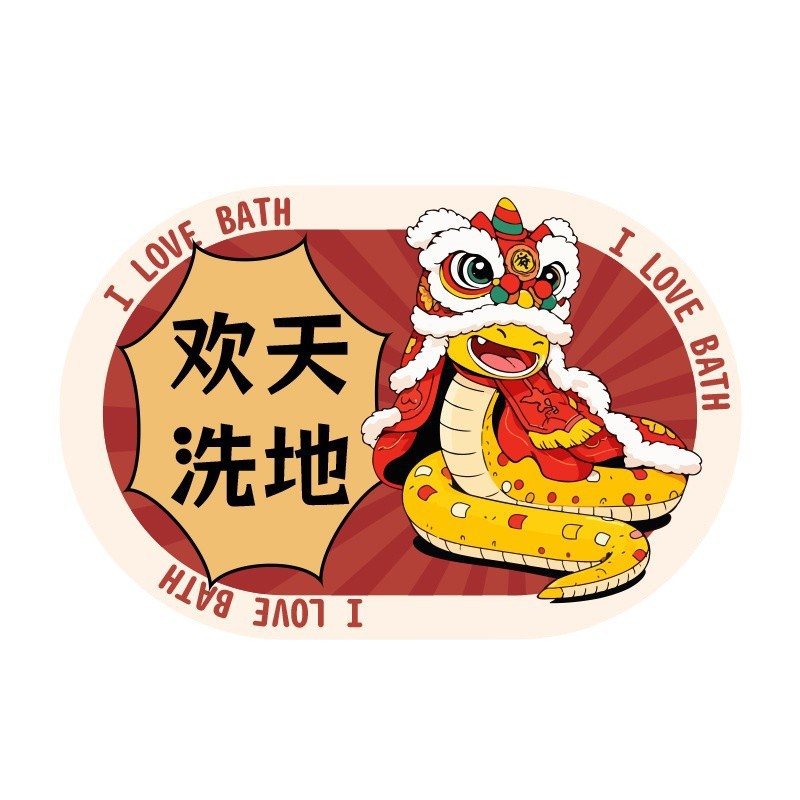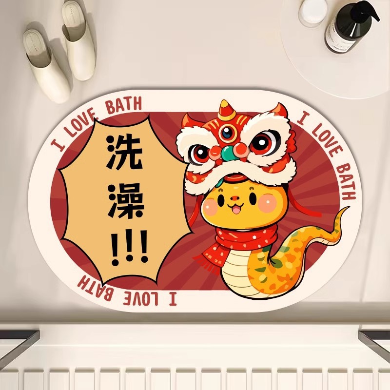 蛇年红色喜庆浴室吸水腳踏垫硅藻泥地垫家用卫生间速干脚垫防滑垫