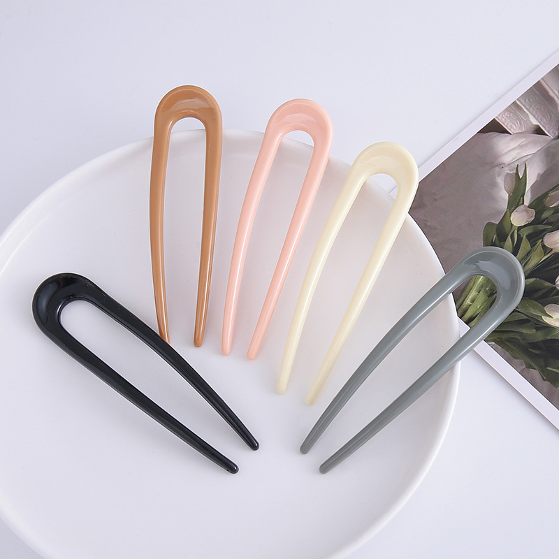 亚克力U型发簪盘发神器简约新中式高级感簪子发髻U形倒插发卡发饰