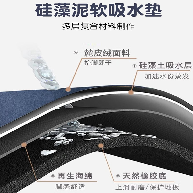 浴室绿色地垫强吸水软硅藻泥垫卫生间门口防滑门垫厕所进门地毯垫