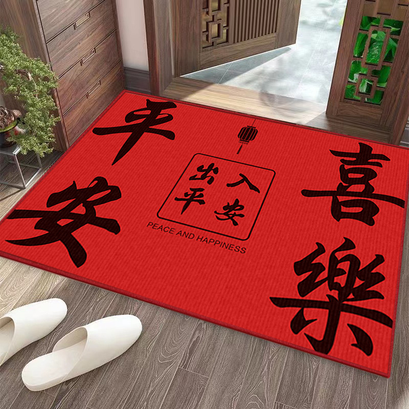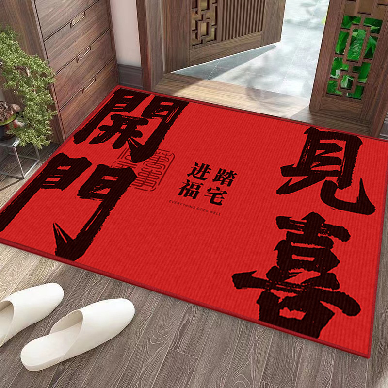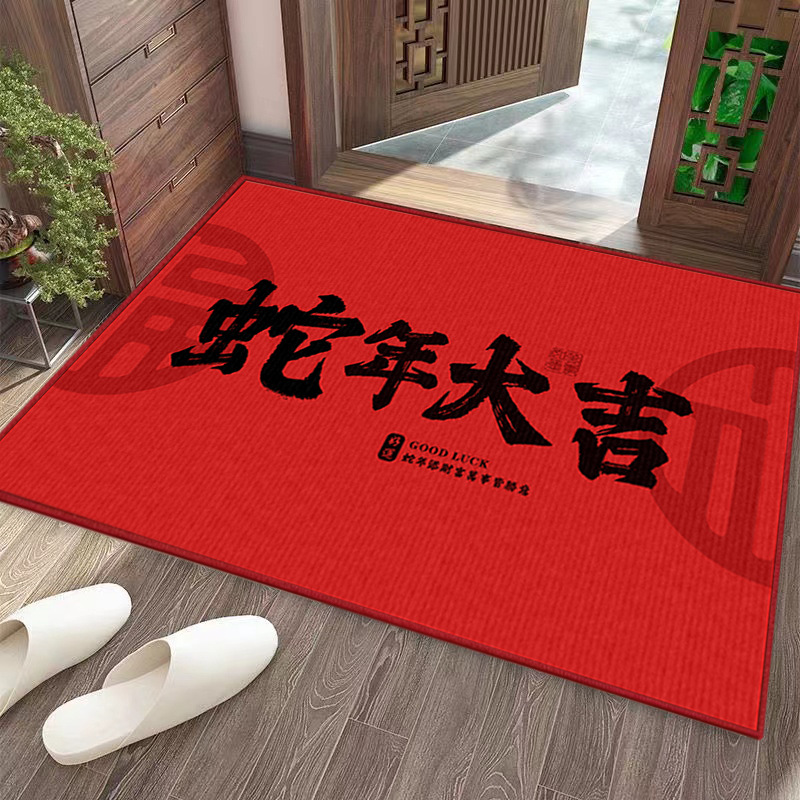 蛇年喜庆 红地毯入户门耐脏玄关进门大门口蹭土除尘垫水晶绒垫子