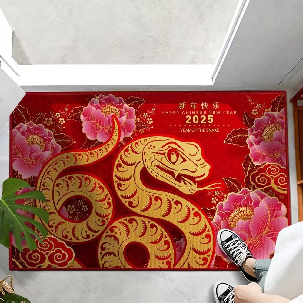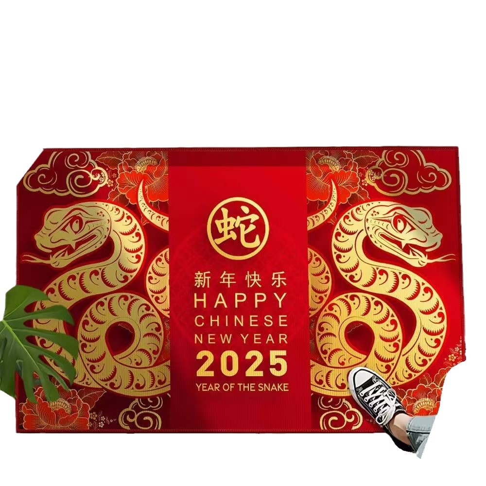 2025新款蛇年地垫入户门耐脏易打理防滑垫进门蹭土除尘红地毯
