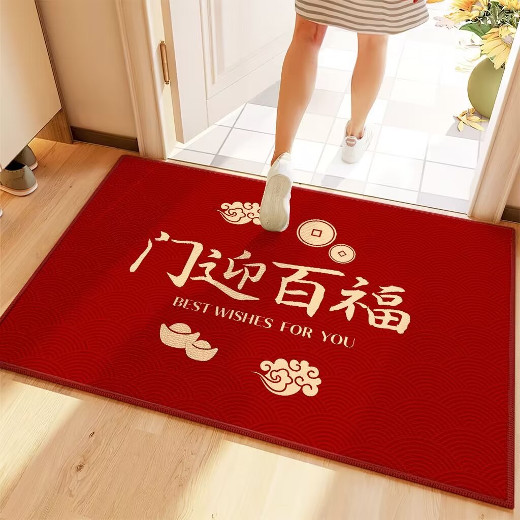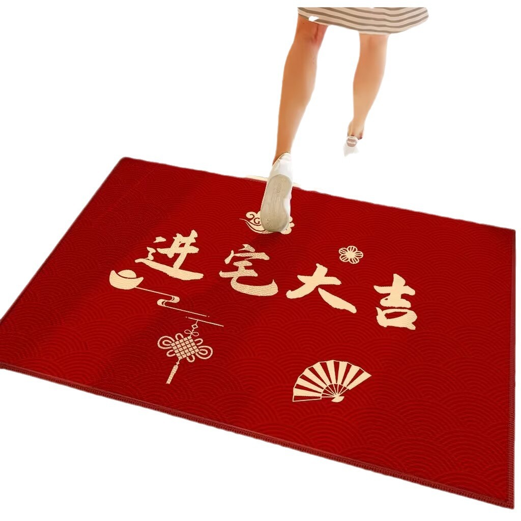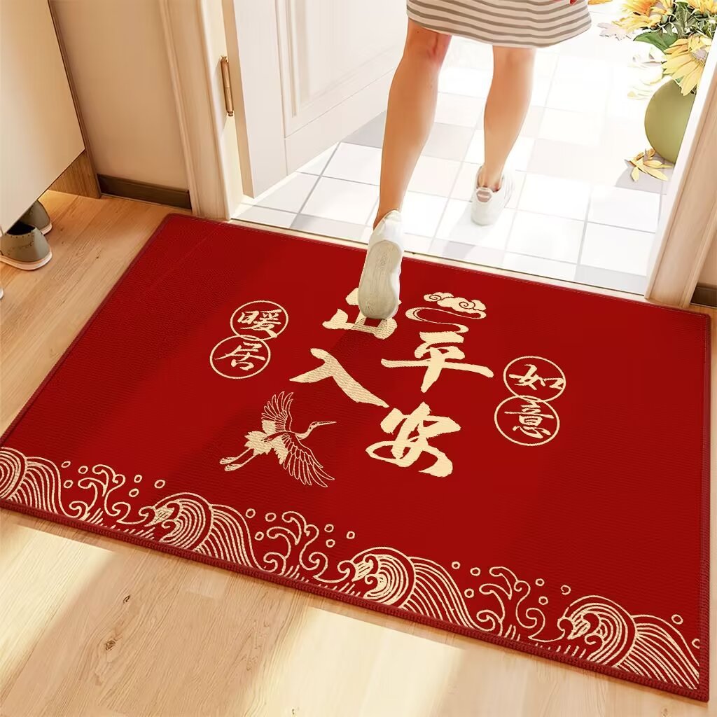 新中式红地垫出入平安门垫进门蹭土防滑脚垫家用水晶绒地垫