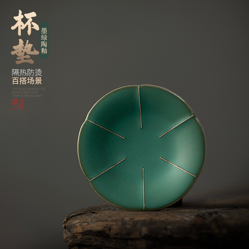 复古陶瓷茶杯垫家用高脚茶托品茗杯隔热垫花瓣茶垫