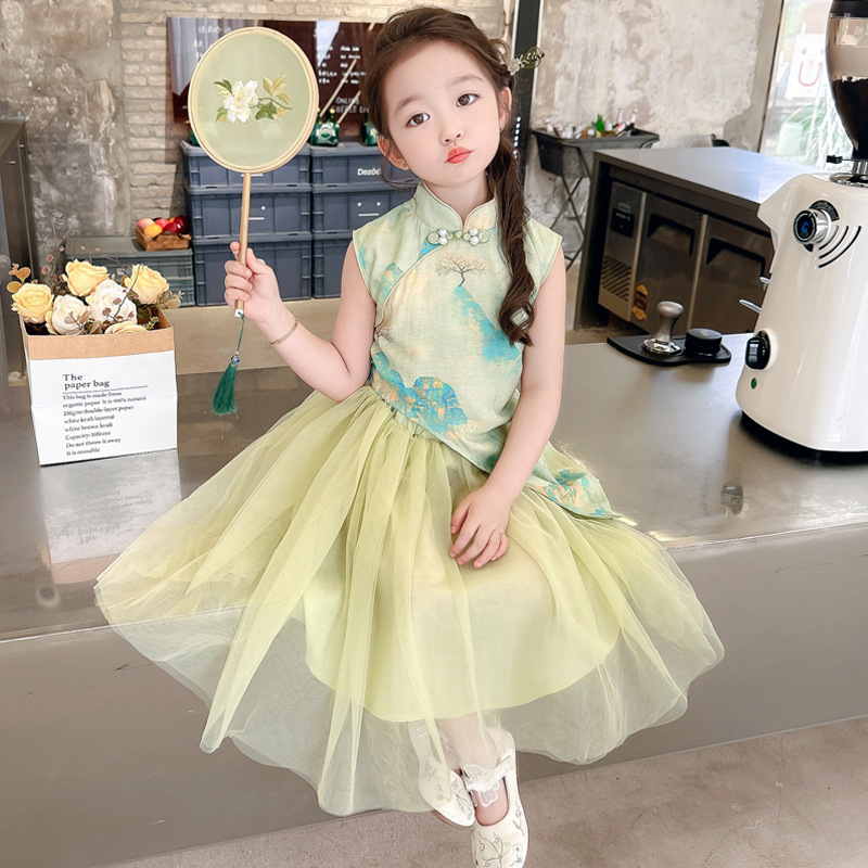 连衣裙女童夏季新中式夏天的裙子小女孩裙子女宝中大童国风旗袍裙