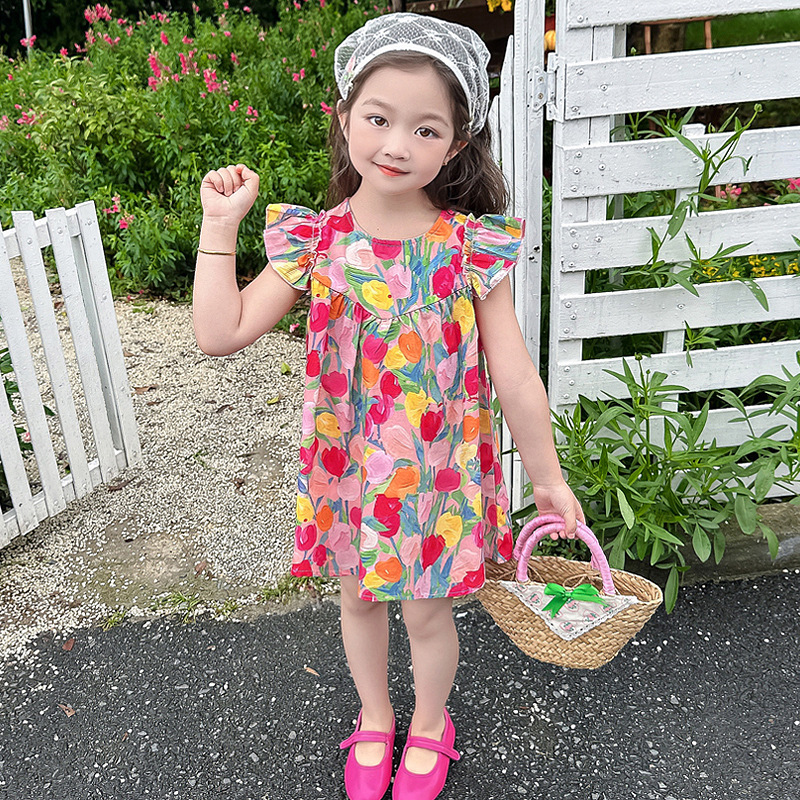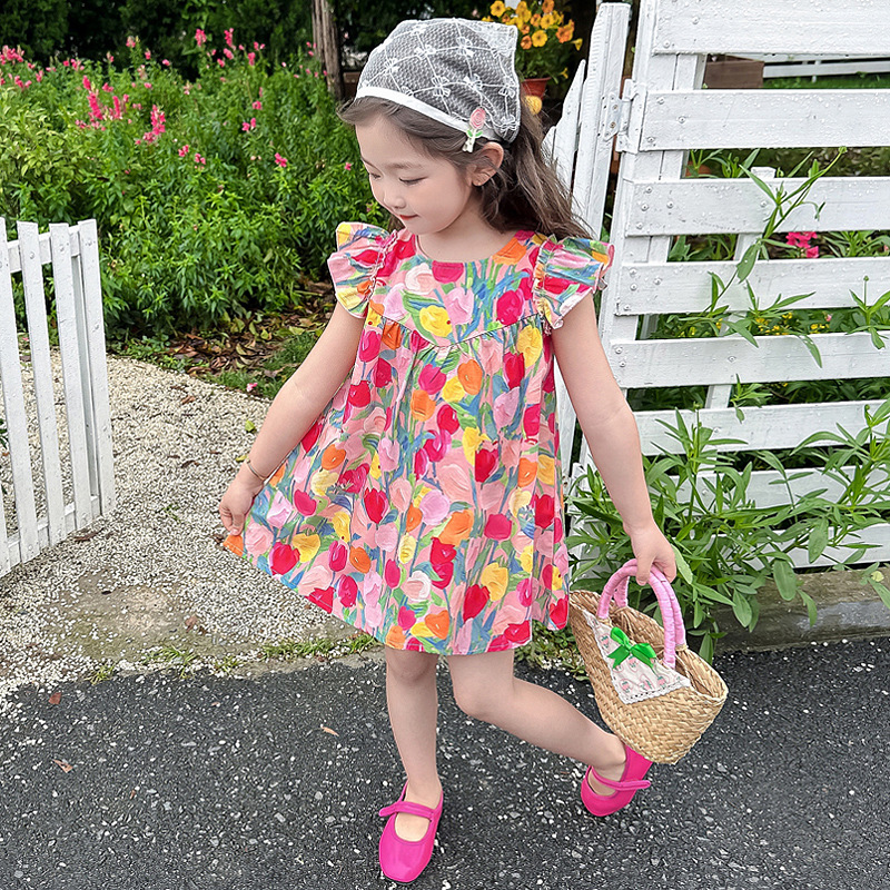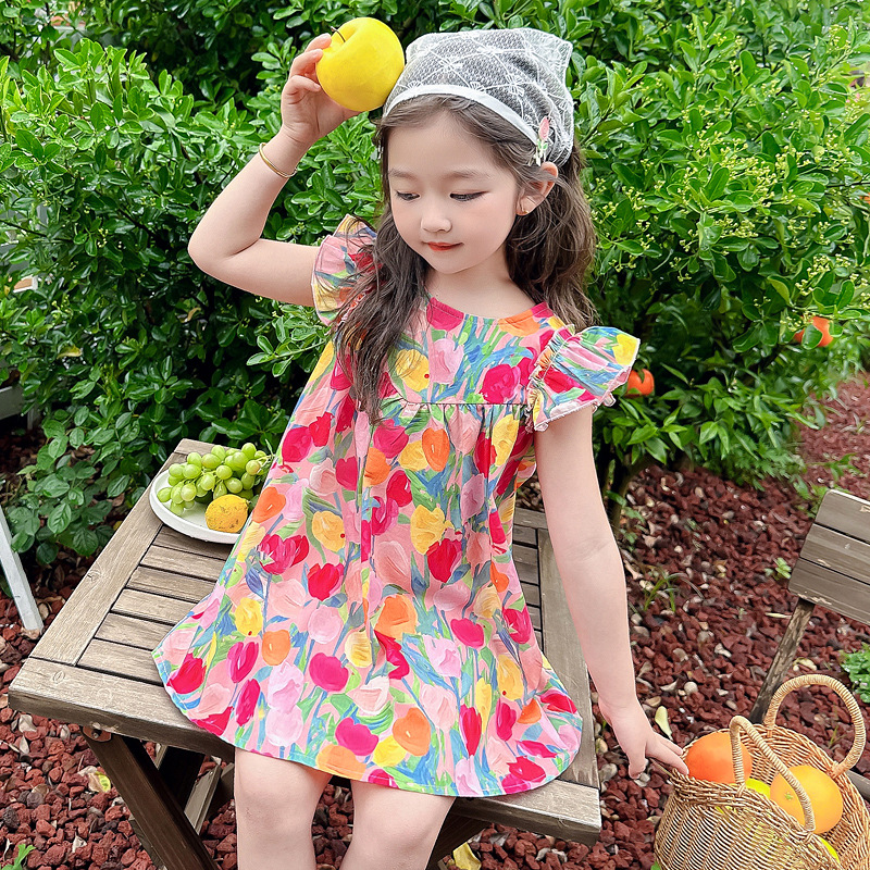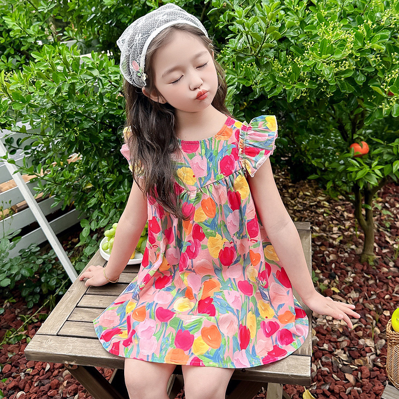 女童连衣裙夏季裙子女孩衣服碎花小飞袖公主裙背心裙宝宝夏装