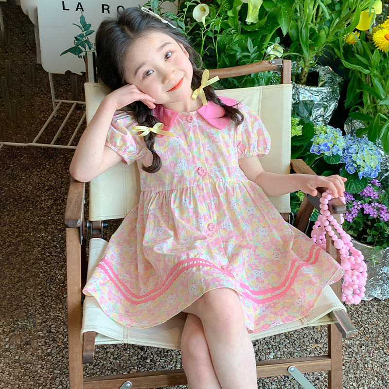 女童碎花连衣裙夏季新款儿童短袖裙子洋气女孩宝宝夏装公主裙