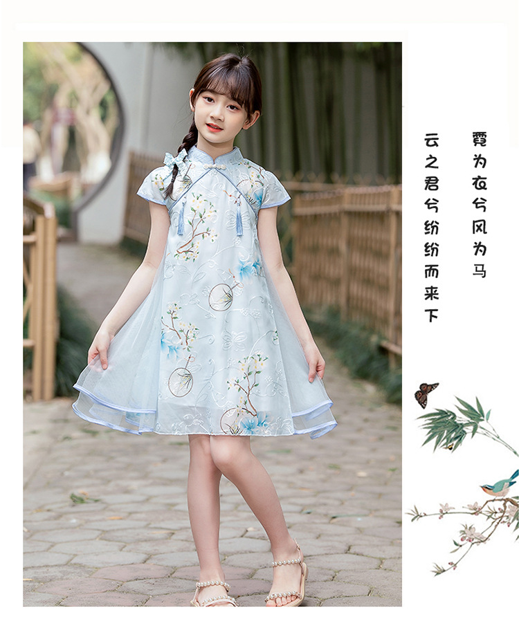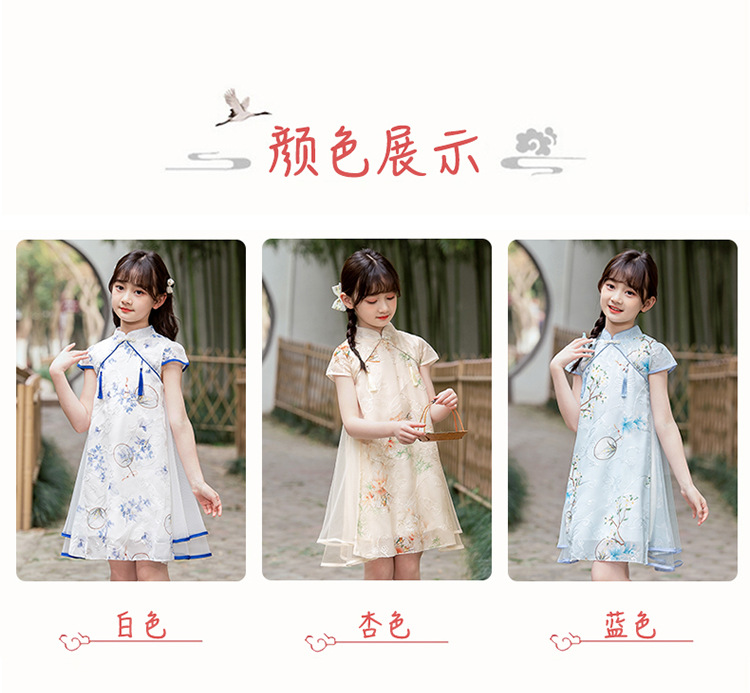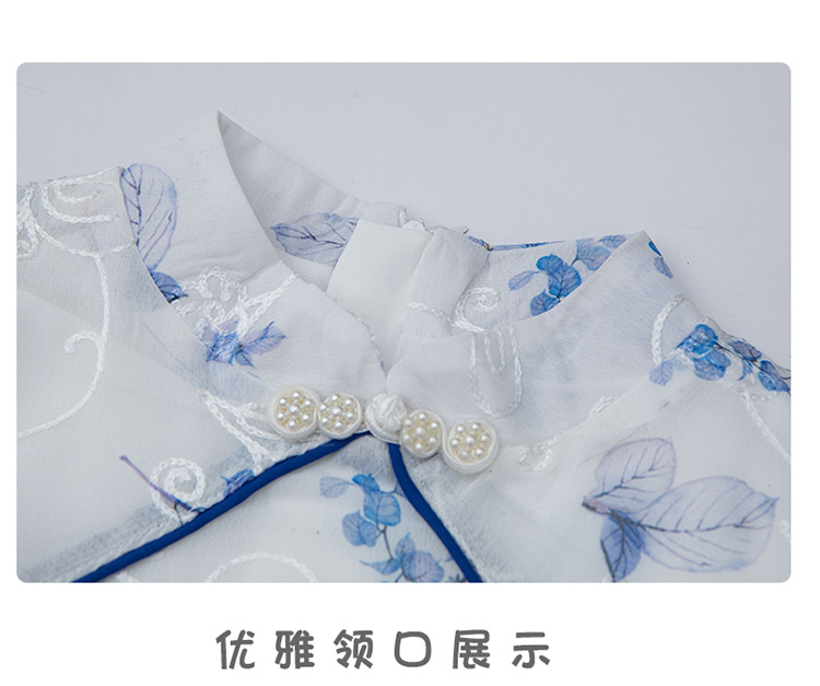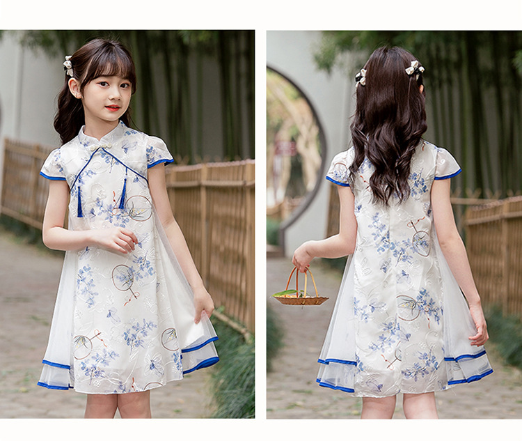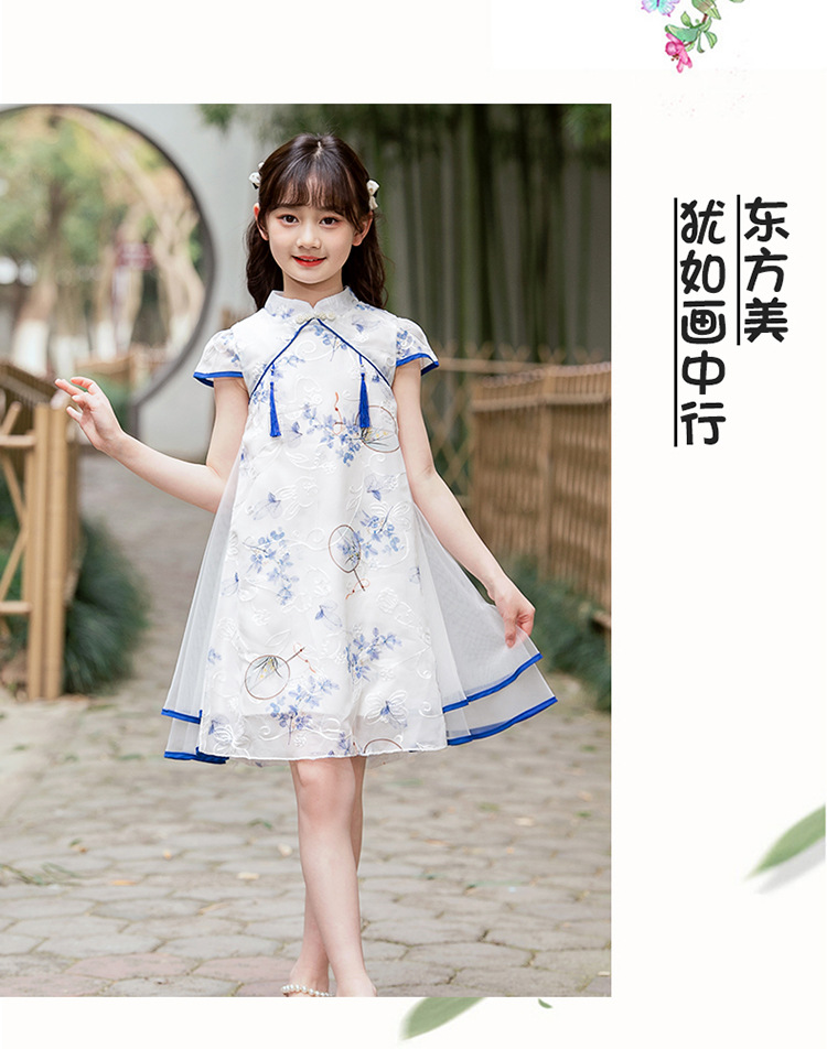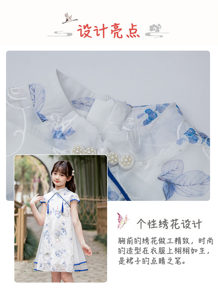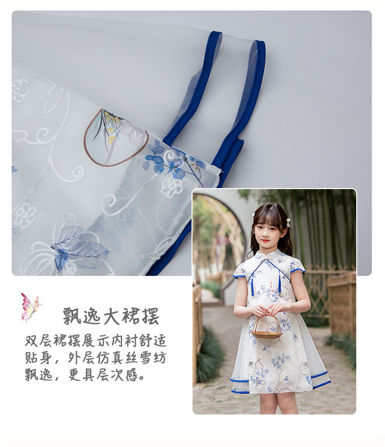 小女孩中国风青花瓷旗袍裙唐装扇子旗袍甜美洋气夏季新品旗袍裙