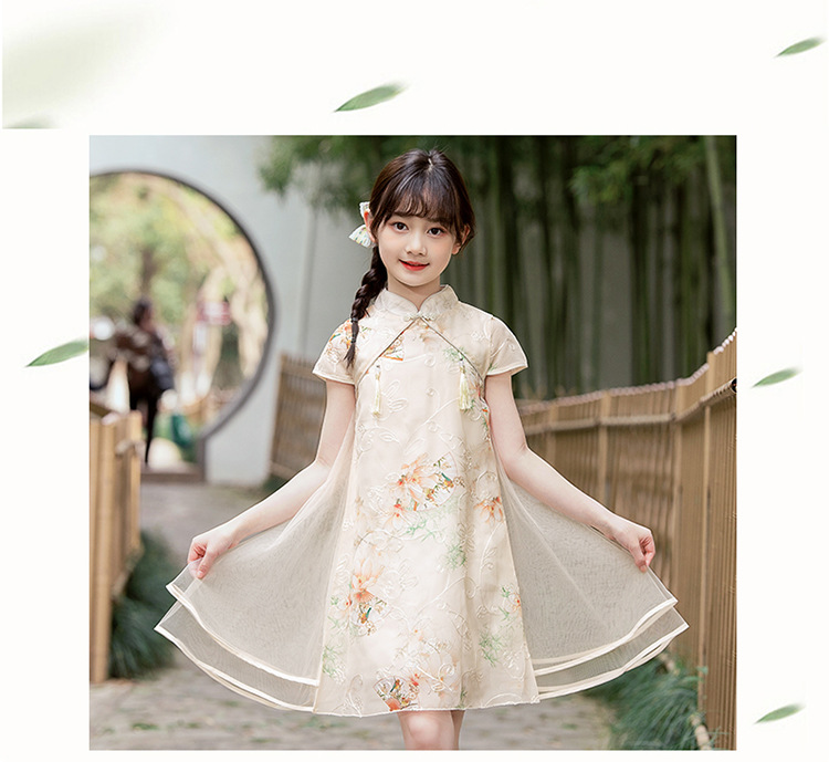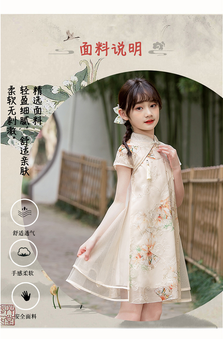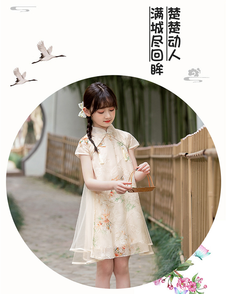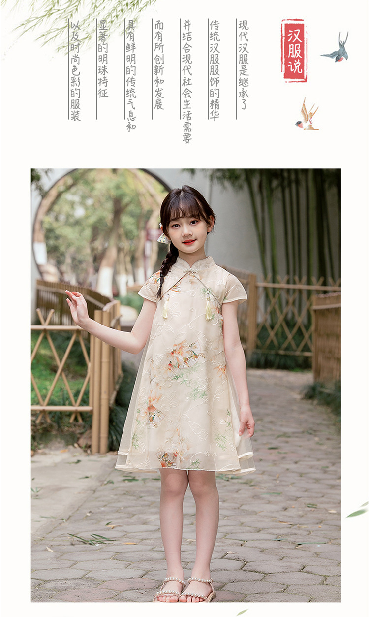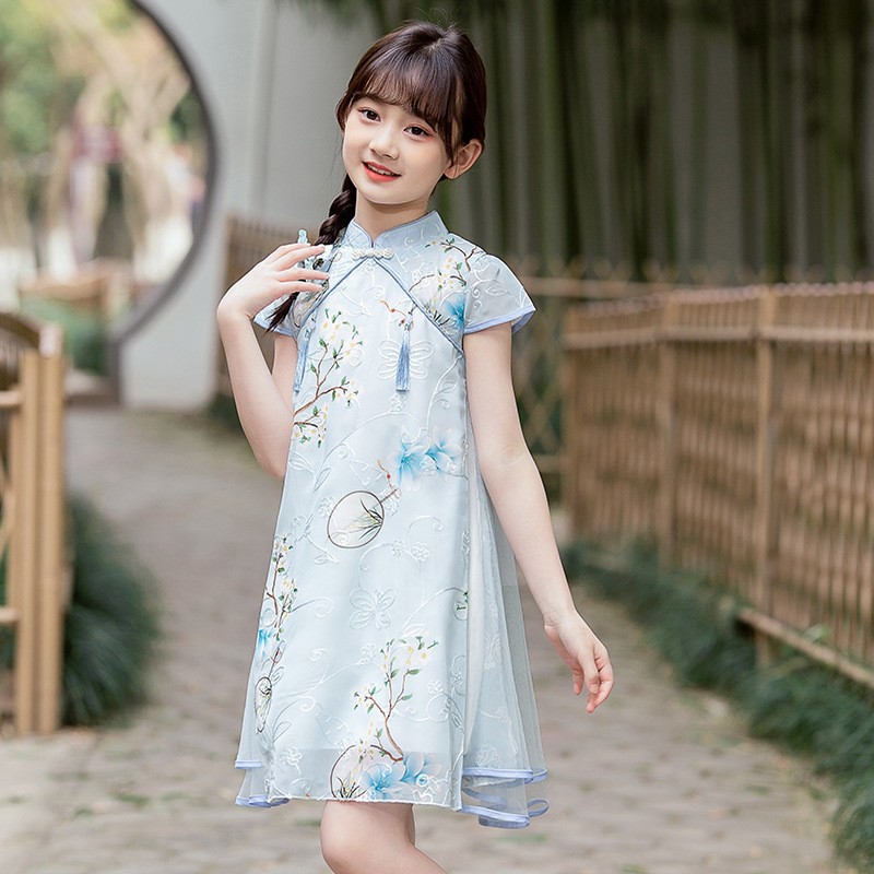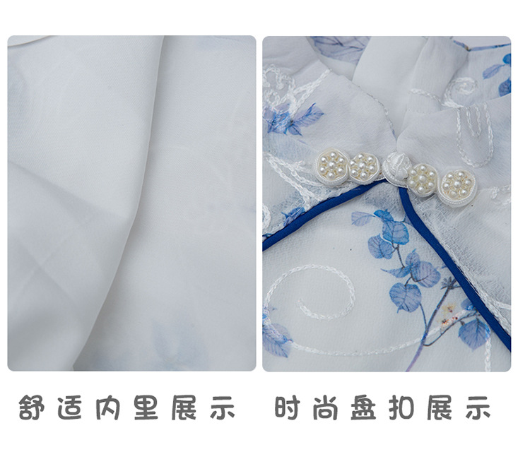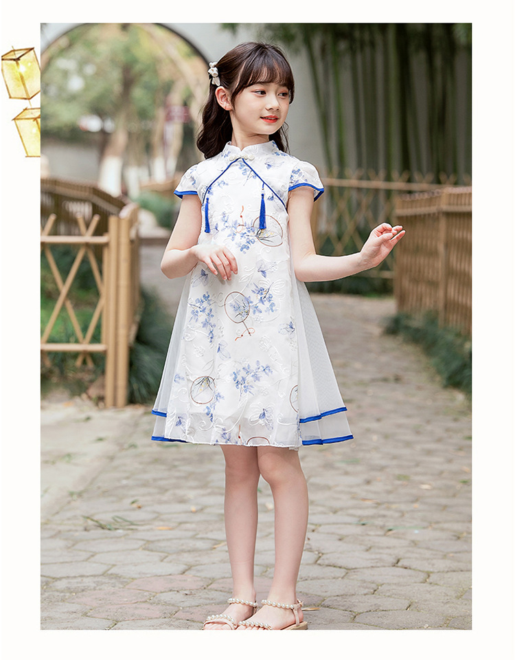 小女孩中国风青花瓷旗袍裙唐装扇子旗袍甜美洋气夏季新品旗袍裙