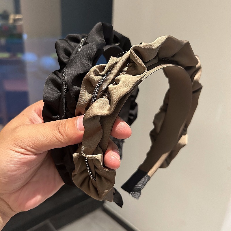 新款发饰批发女款简约大花边木耳头箍绕水钻布艺发箍发卡气质头扣