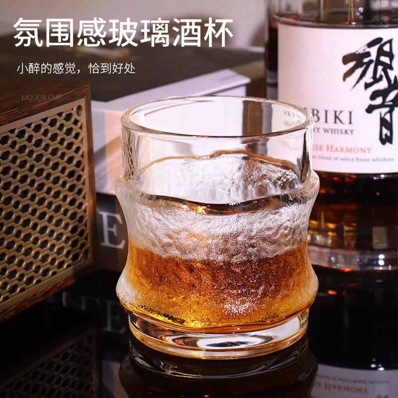 威士忌酒杯喝茶杯子玻璃家用日式洋酒啤酒杯高级感冰纹杯轻奢高档