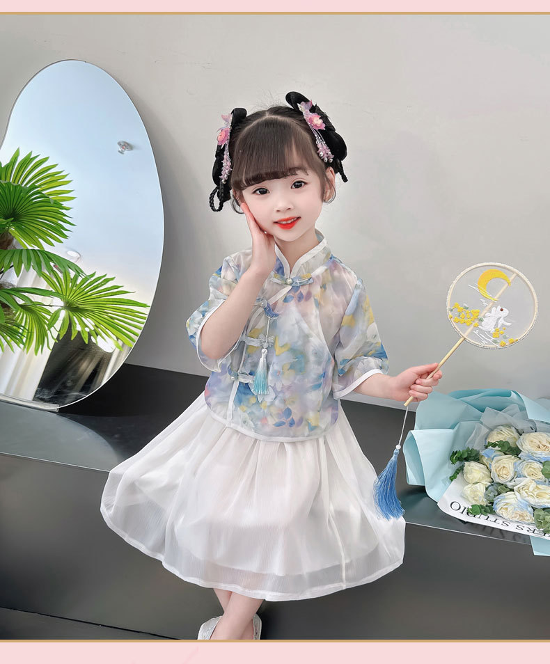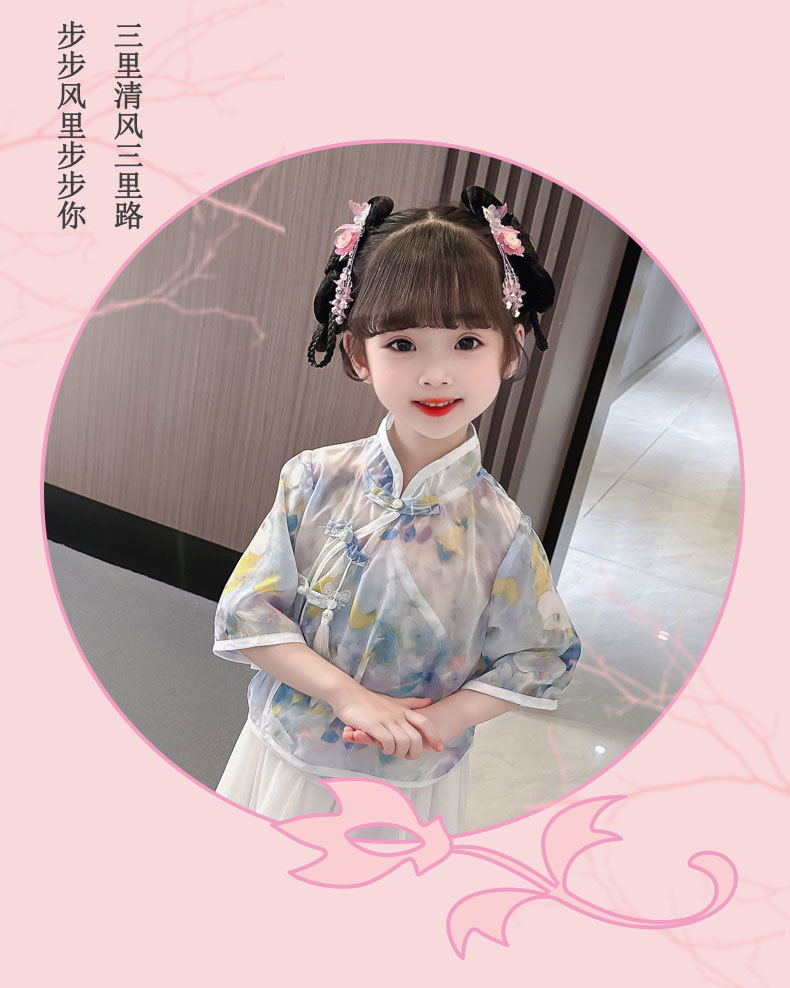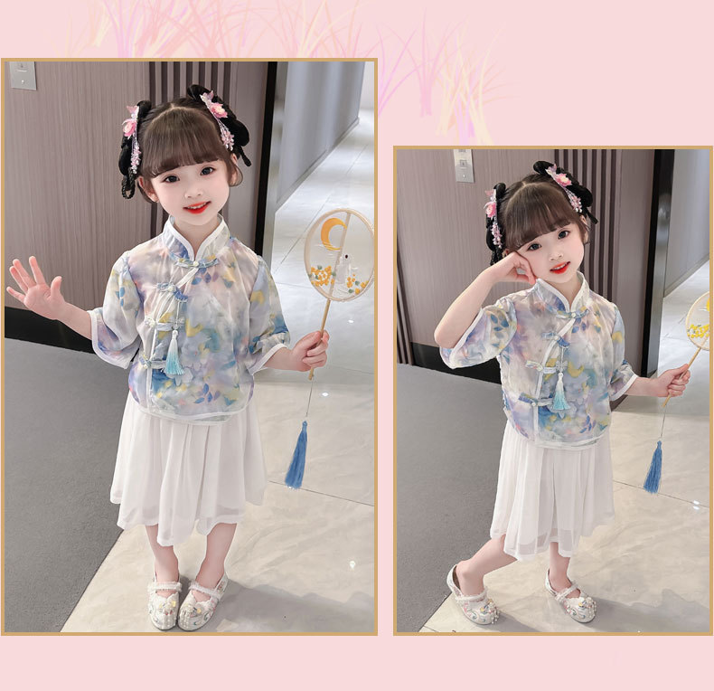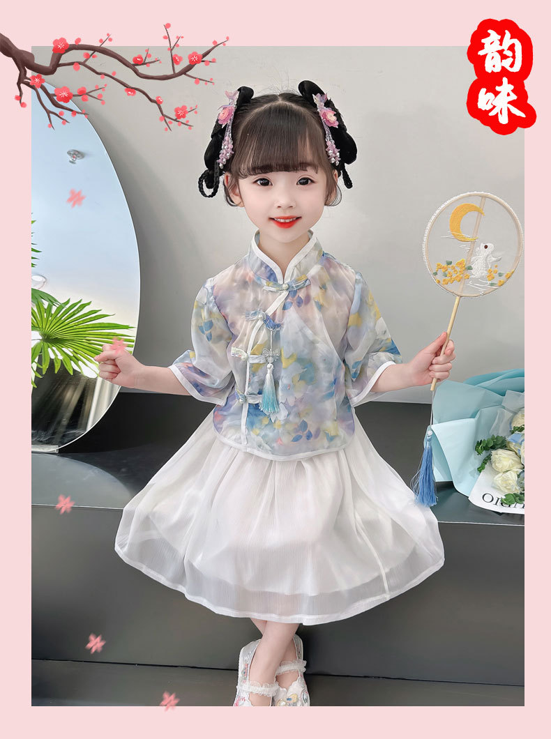 童装夏季新款儿童旗袍套装汉服古风民族风上衣裙子两件套
