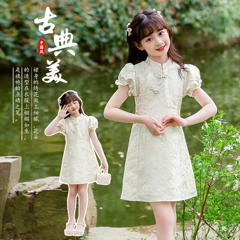 女童中国风旗袍连衣裙六一表演服夏季新品古风超仙时尚唐装表演服