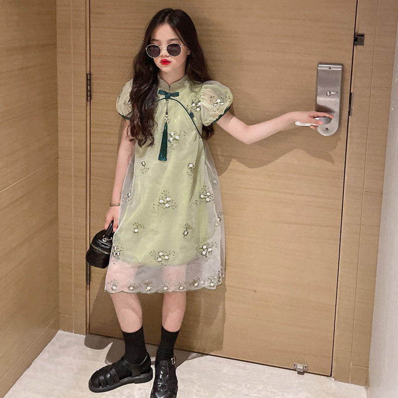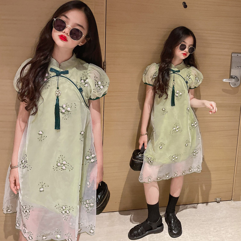 小女孩古风绿野仙踪旗袍裙夏季新品时尚唐装