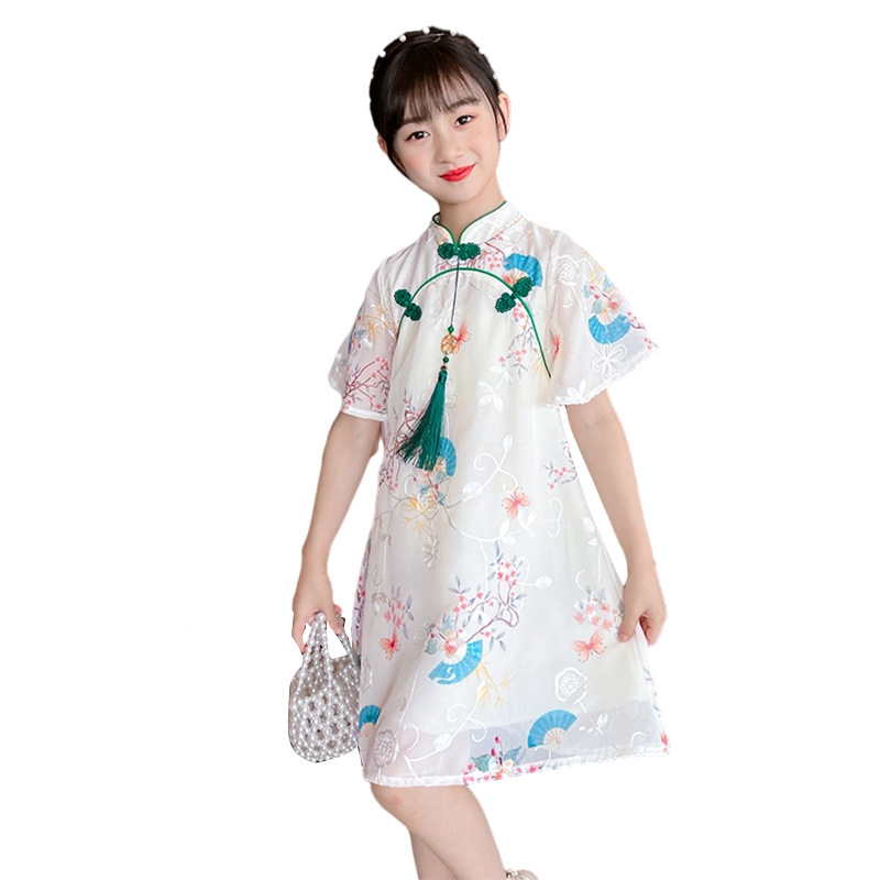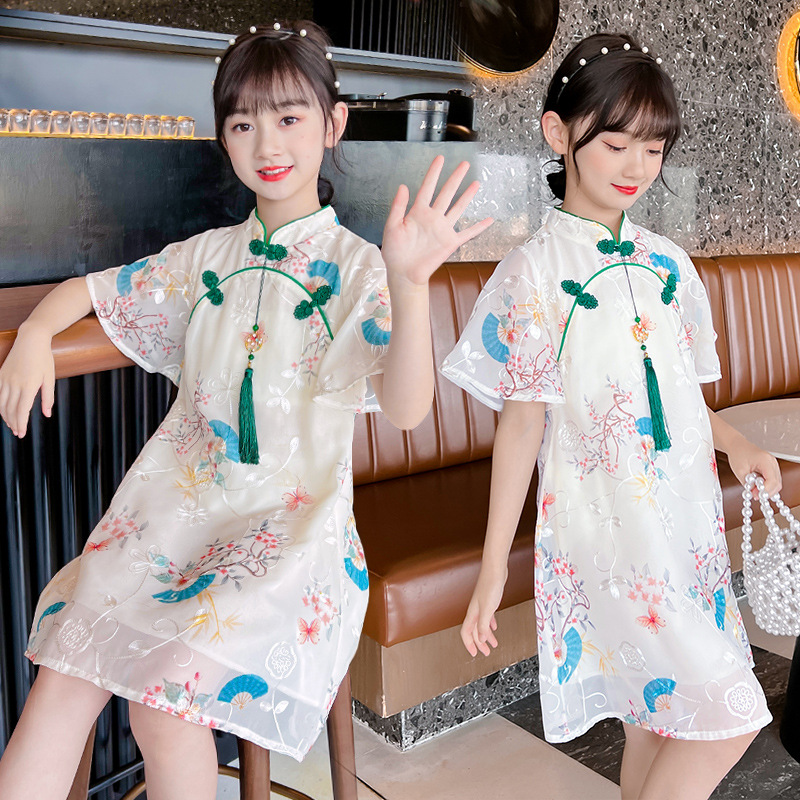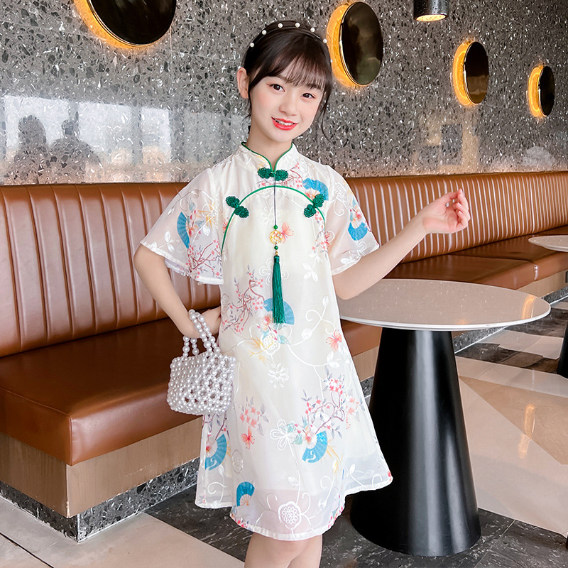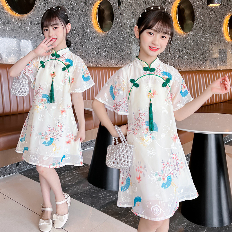 女中大童雪纺绣花裙夏季新品古风超仙时尚洋气